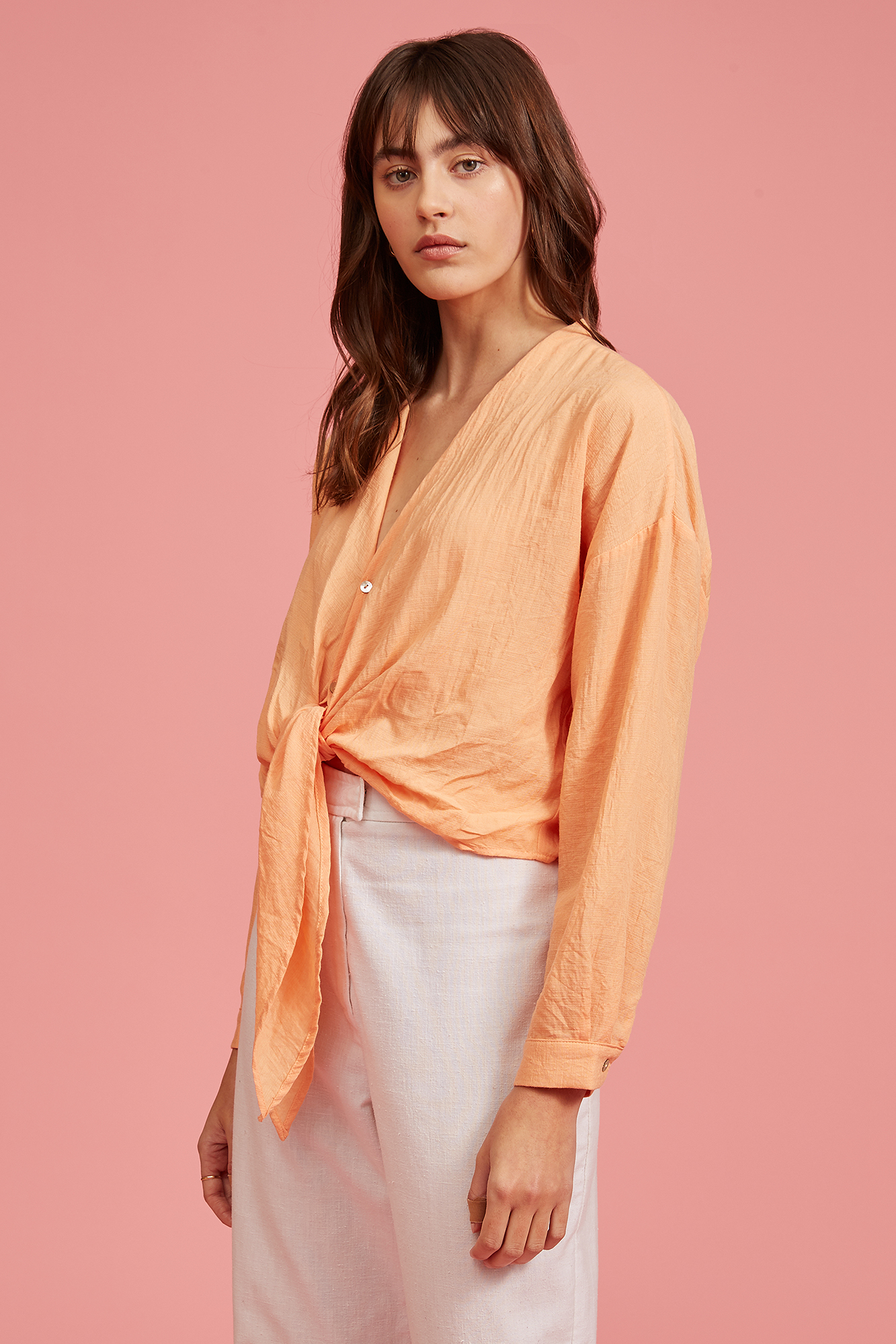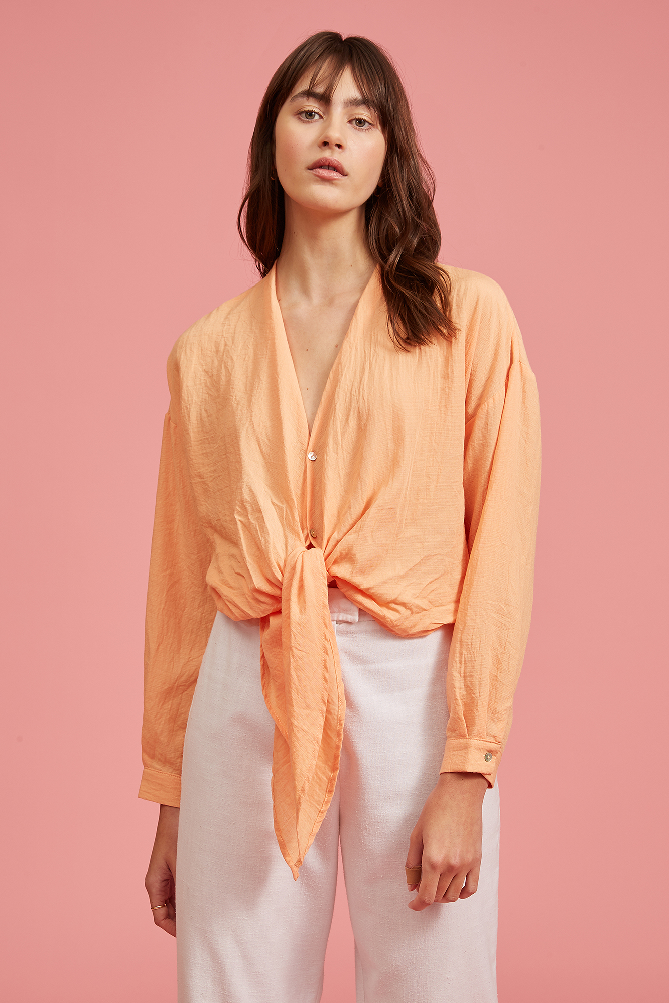 This orange tie top is great for summer. The bright orange is a great pop of color and it looks great with any wash denim jeans.