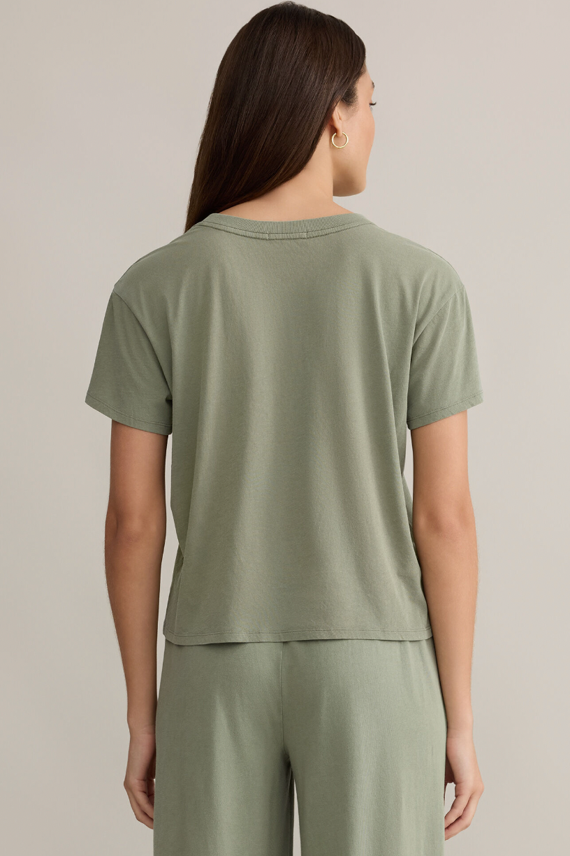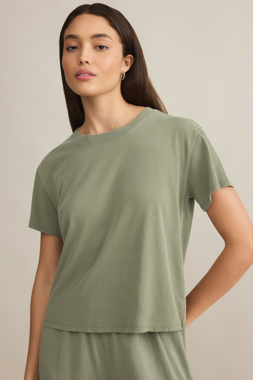 The Go To Washed Tee is a classic short sleeve with a relaxed fit. This tee features a classic crew neckline with subtle stitching details. The hem falls just above the waist, giving it a slightly cropped look. The soft and lightweight material makes this tee comfortable for everyday wear.