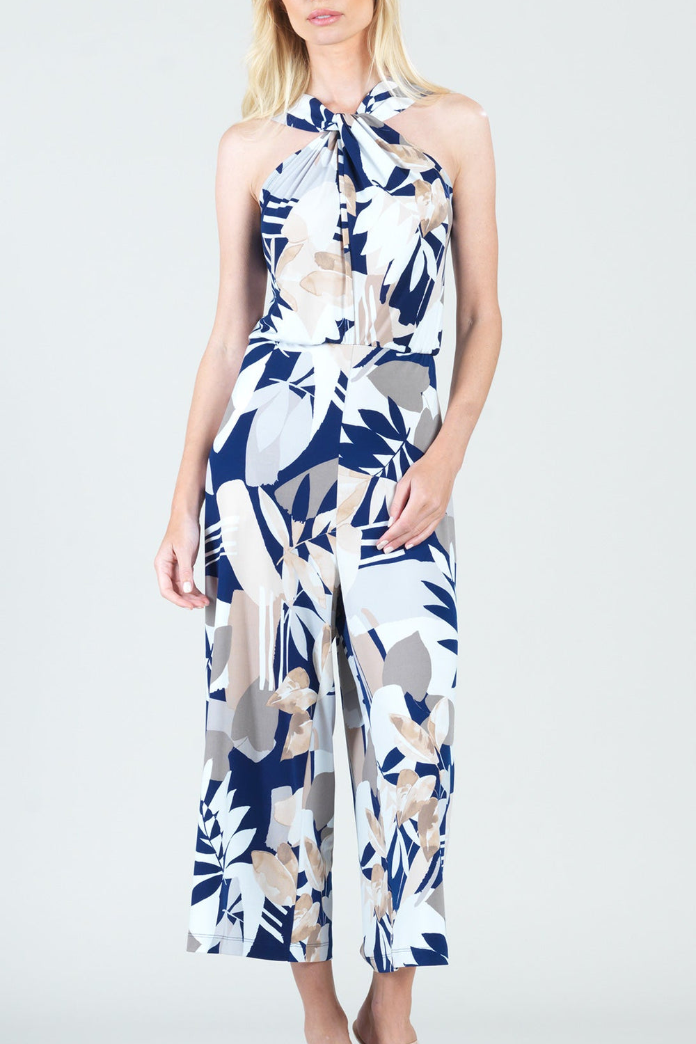 Allow our Geo Flower Grecian Halter Pocket Jumpsuit to encompass your closet! Featuring a feminine Grecian halter neckline, that transitions into two standard back straps, a seamed waist that creates a beautiful shape, two modern pockets, and a cropped gaucho silhouette. Designed, as always, with no ties or zippers, making it the perfect step-in and-go piece.