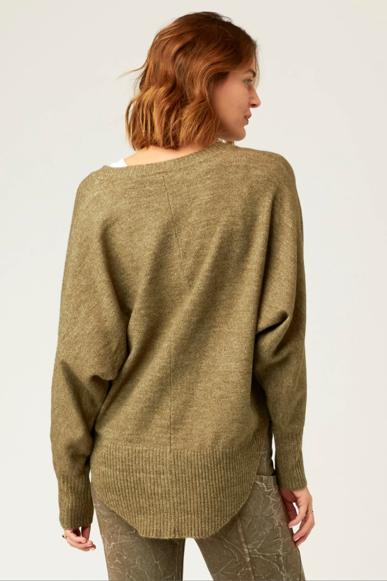 A ribbed high low rounded hem with a dolman sleeve and ribbed cuffs really makes Gretchen stand out.