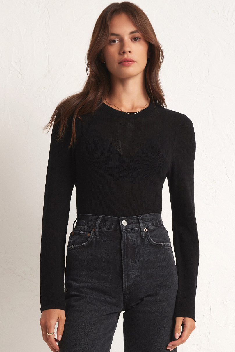 This sweater has a heart knit pattern with a fitted shape. Wear this sweater for a sleek look.