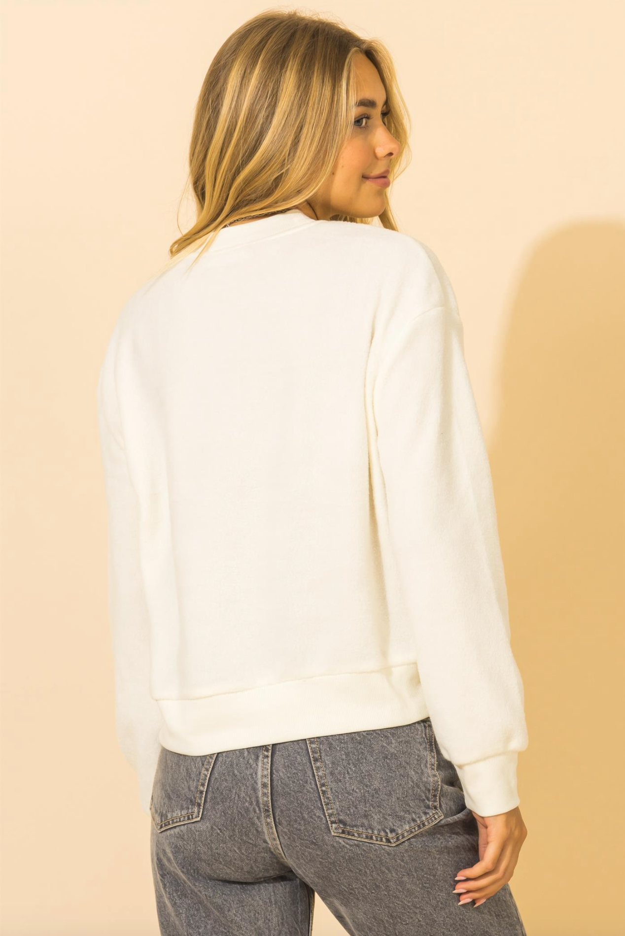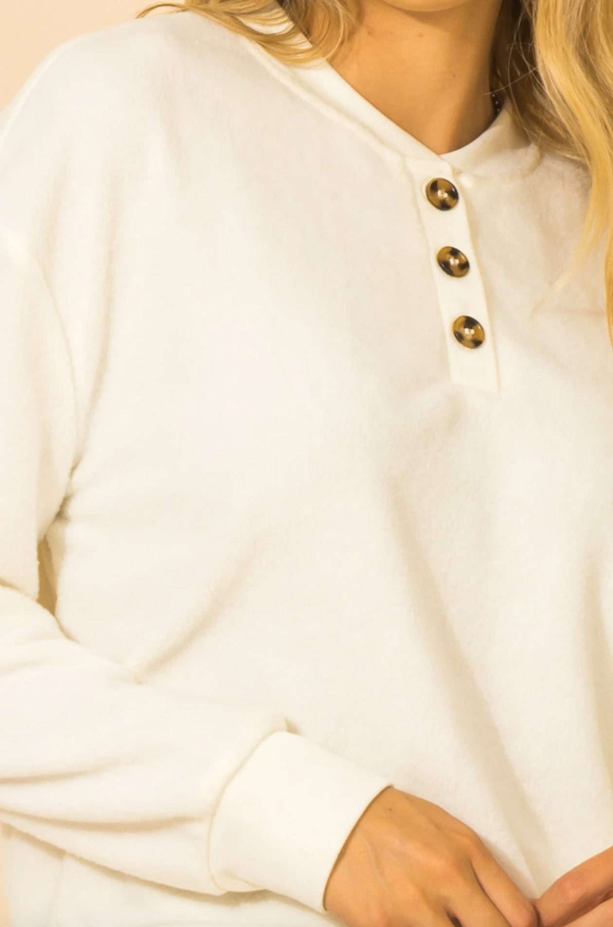 An easy henley sweatshirt that can be worn with leggings or jeans. The color is amazing and its a great addition to the closet.