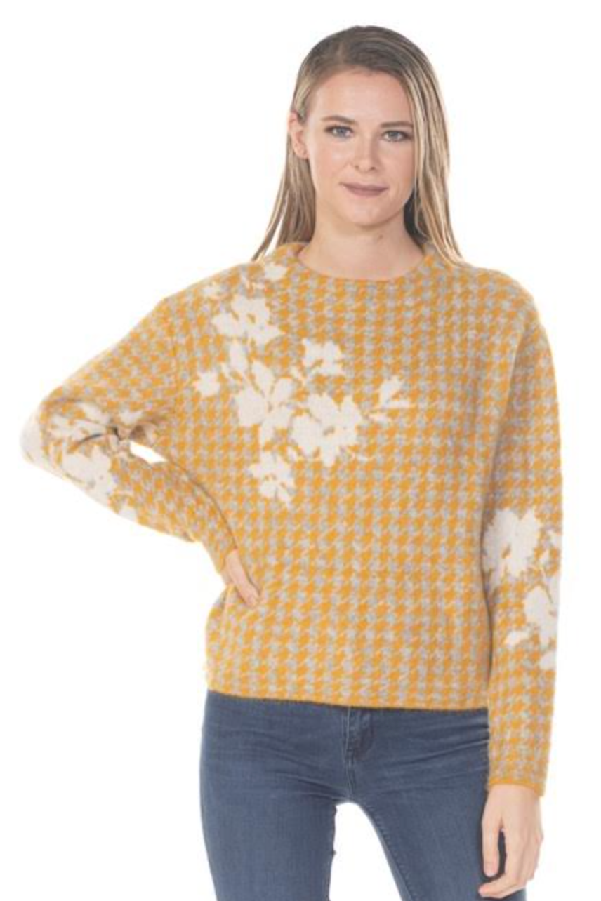 Herringbone Sweater with Flower Print