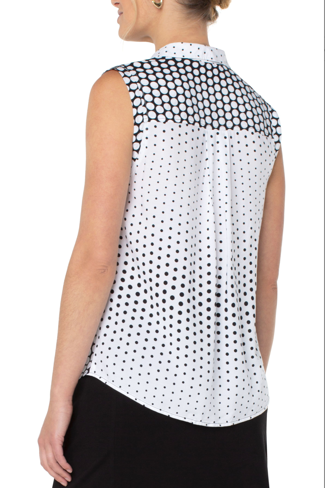 This collared sleeveless top is great if you have to work in an office. It's bold but still office-friendly. Also great to transition with jeans for a happy hour.