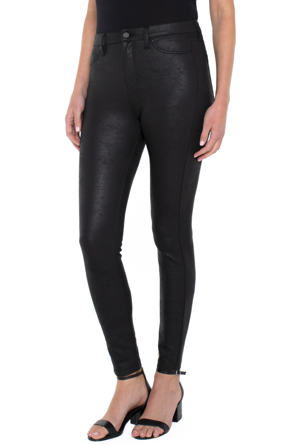 These black coated pants are great for fall. Looks great for a night out with friends or a date night.