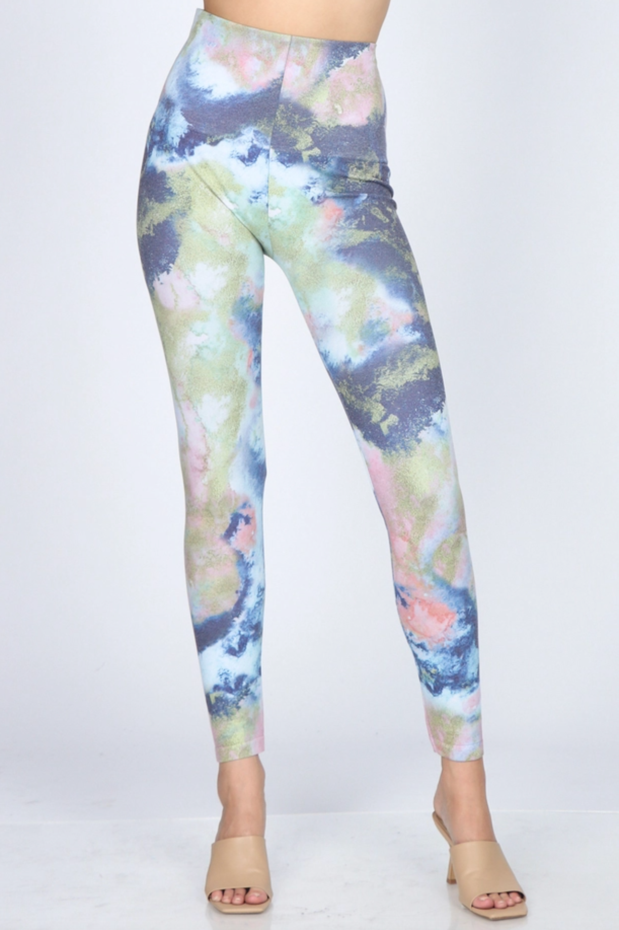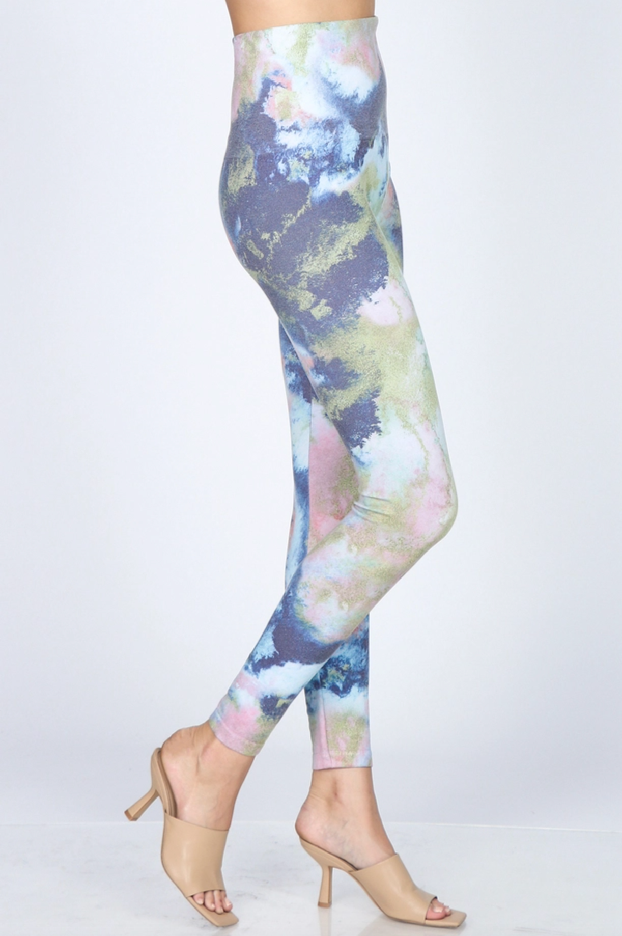 High Waist Full Length Legging with Watercolor & Gold Foil Print