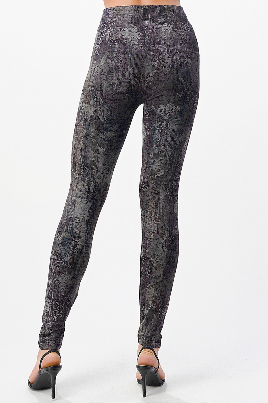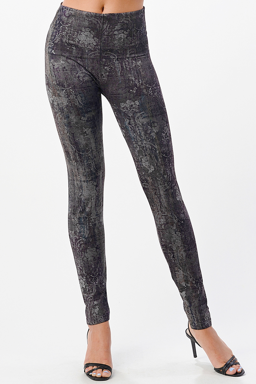 Our high waist leggings feature M.Rena's iconic tummy control waistband, a distressed Rothschild damask pattern, and they're made in USA!