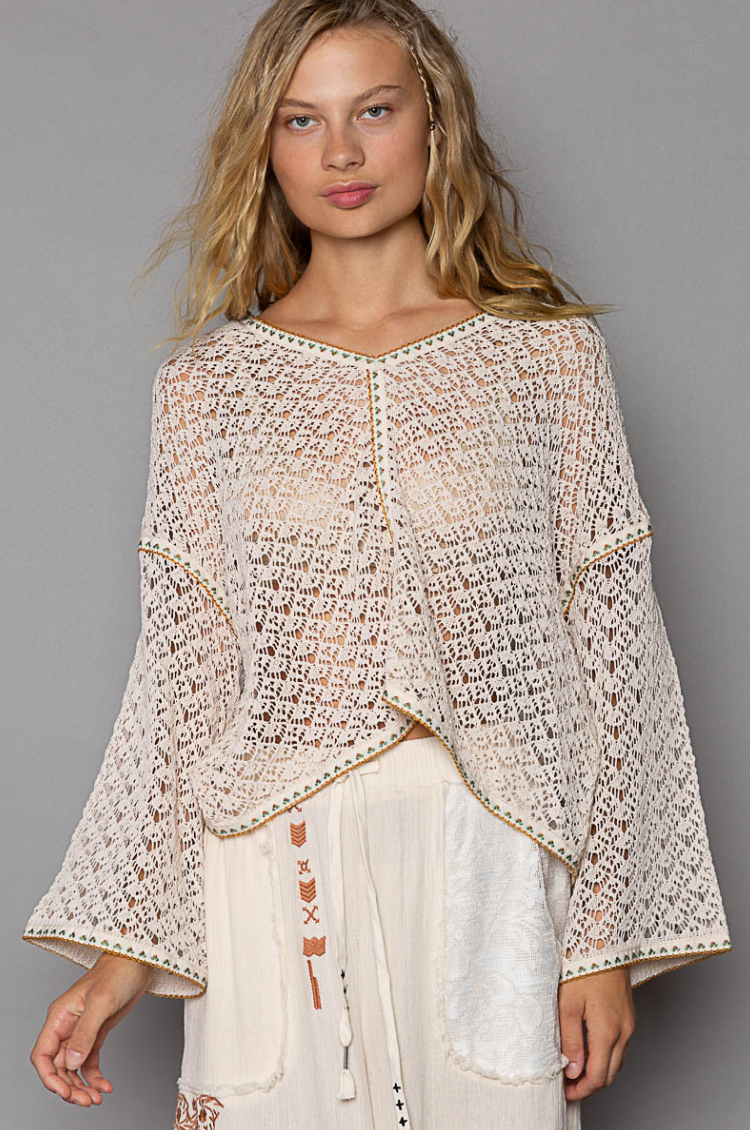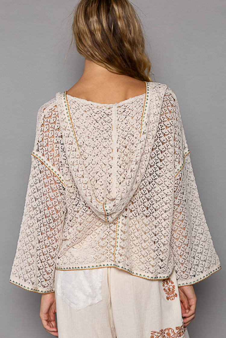 If you have a boho style this top is for you! This V-Neck top has a relaxed fit complete with a hood. Wear with jeans or wear over a swimsuit after a day at the beach.