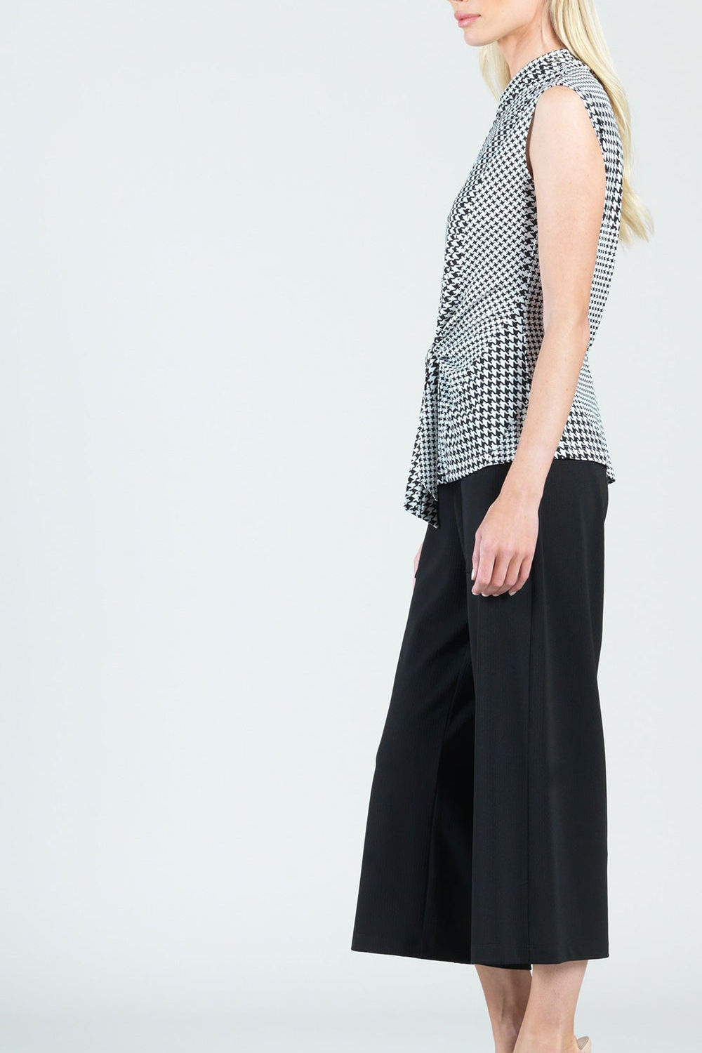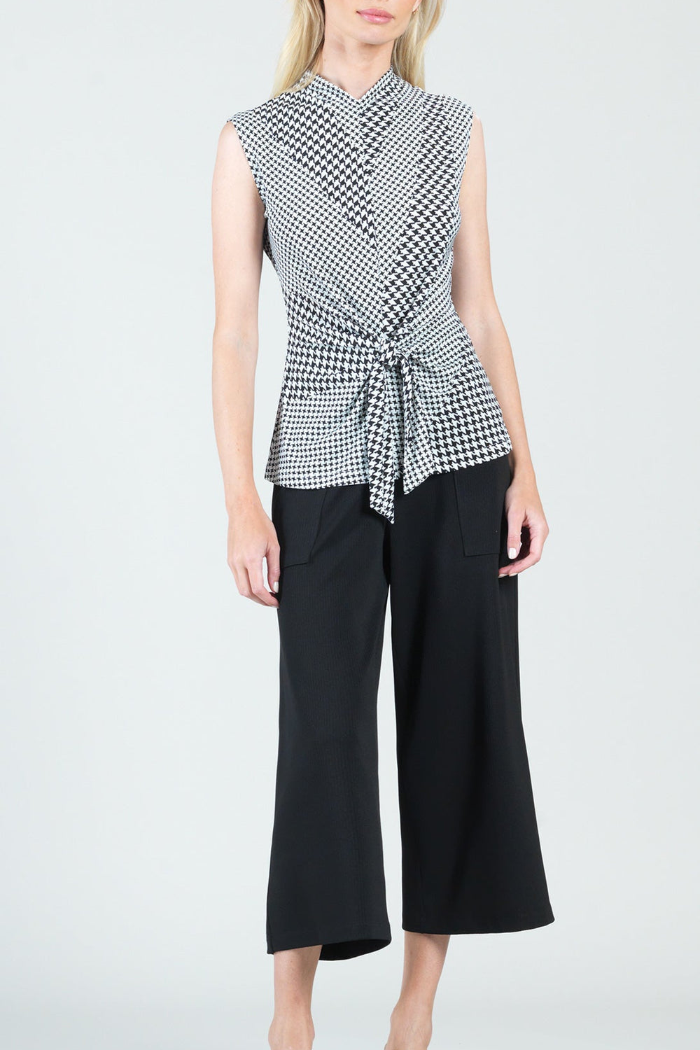 Our Houndstooth Grid Sleeveless Center Front Tie Top is made to look modern, but with a vintage flare! This flattering sleeveless top features a v-bottle neckline, a neck to hem seam, and a front center waist tie that creates a beautiful draped effect which accentuates your natural figure.