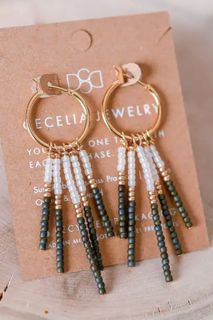 These earrings are made with seed beads and gold-plated nickel free earrings hooks. Handmade in Minnesota. You plant one tree with each purchase!
