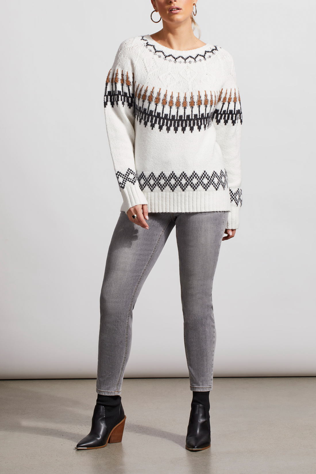 A great sweater to take on a ski trip! Use it to stay cozy in your cabin, or wear this sweater around the ski lodge accessorized with a headband and boots.