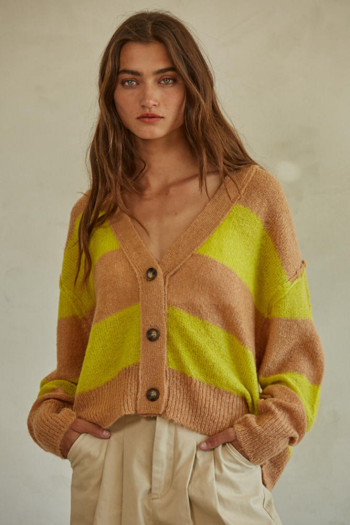 Knit Sweater Stripe V-Neck Button Down Long Sleeve Cardigan