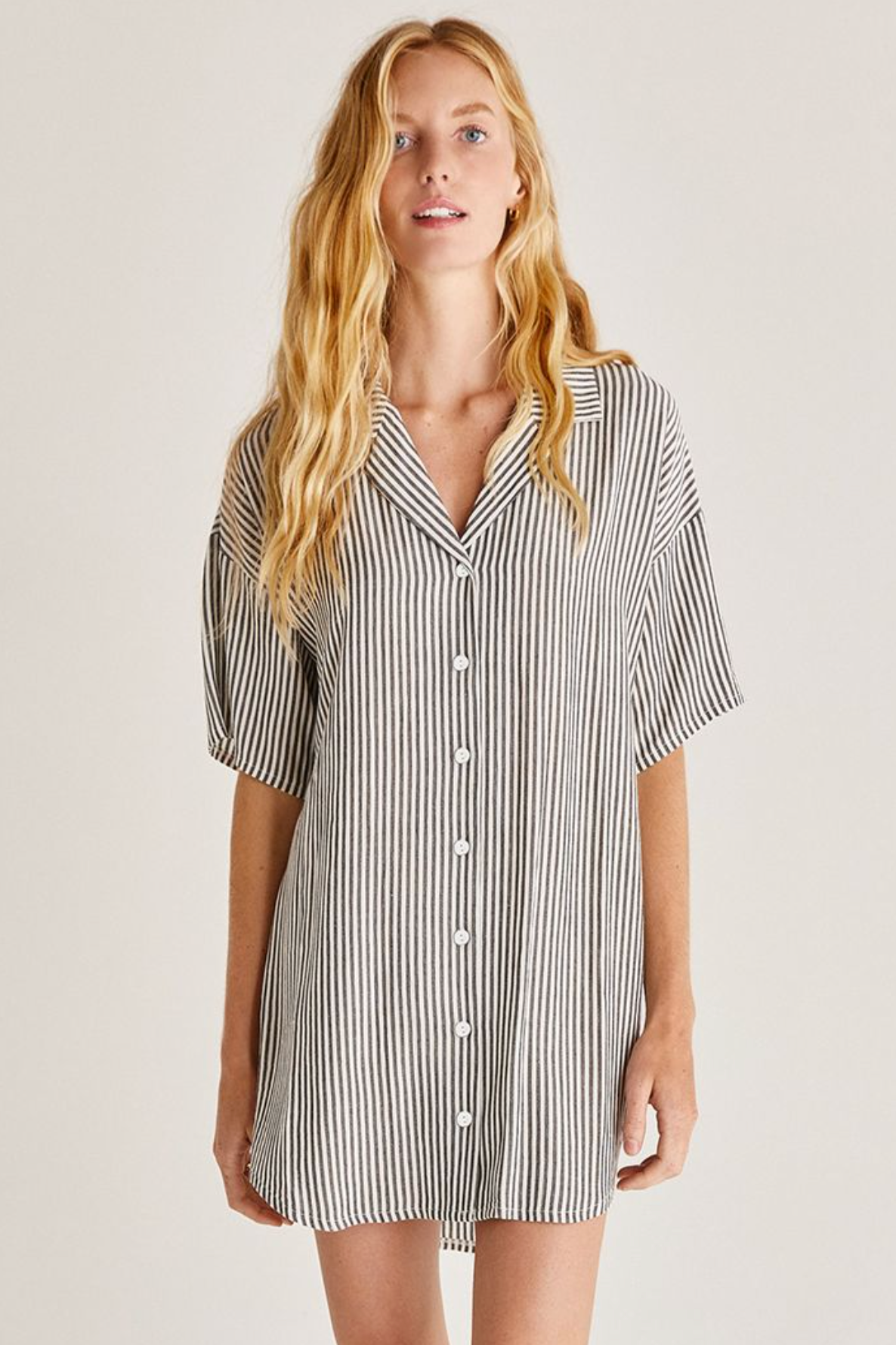 James Striped Dress combines that put-together look with lived-in comfort. Stripe dresses are made for springtime! The James features thin black stripes and