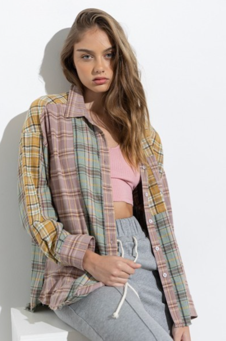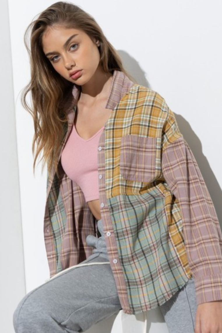 This multi patchwork top can easily match with anything. Looks great casual with leggings or jeans.