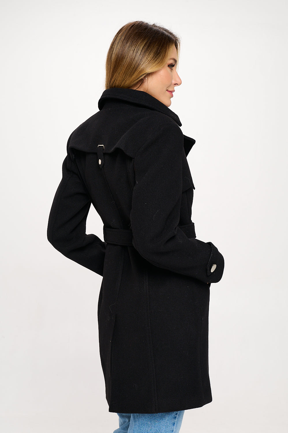 Buckle Details, Snap Buttons, Belted, Buttons, Vegan Wool Coat