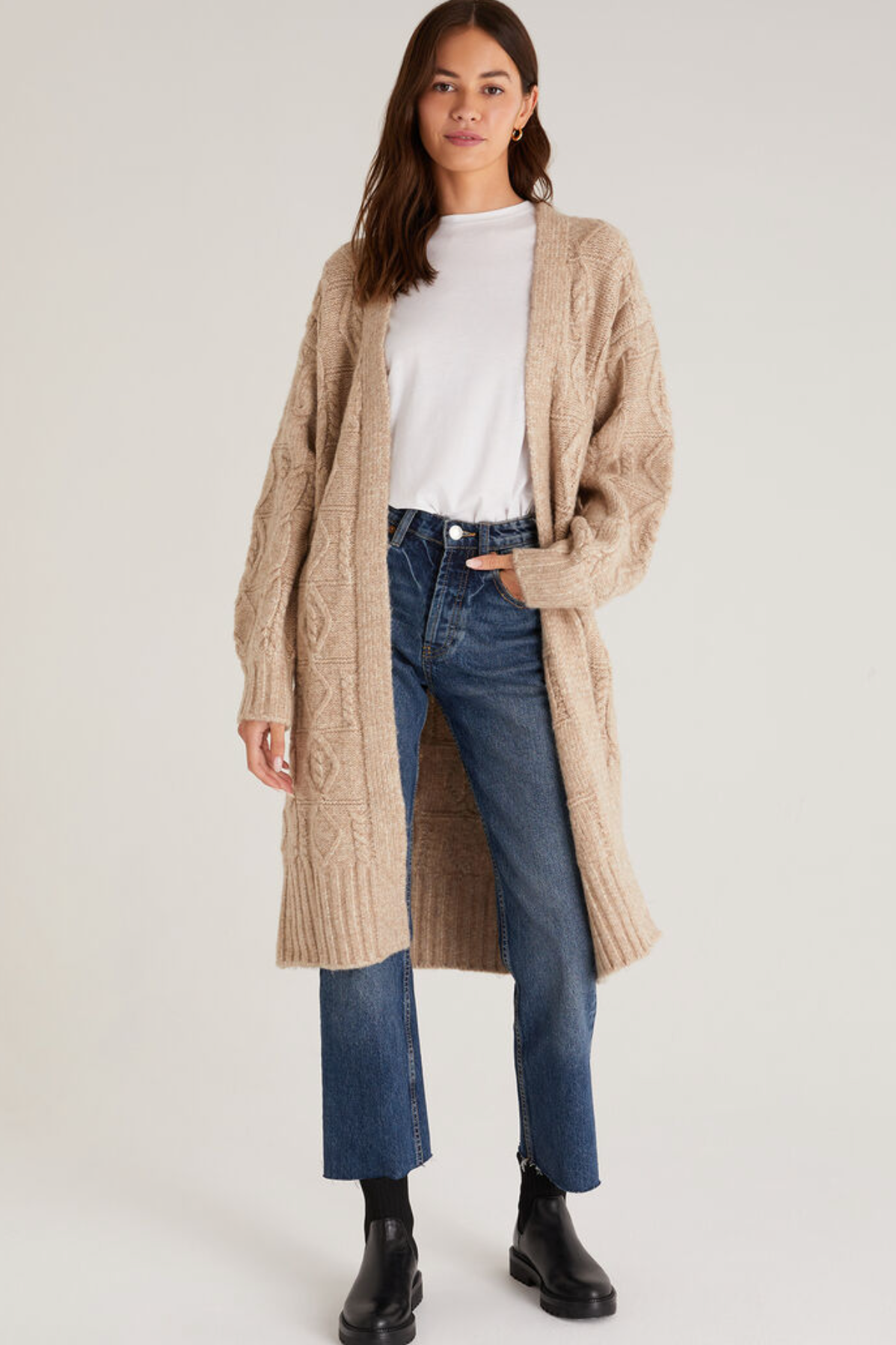 Throw on the long, open-front Kai Long Cardigan on over everything because it's that perfect layering piece for those chilly days. It hits about mid-calf for the perfect look.