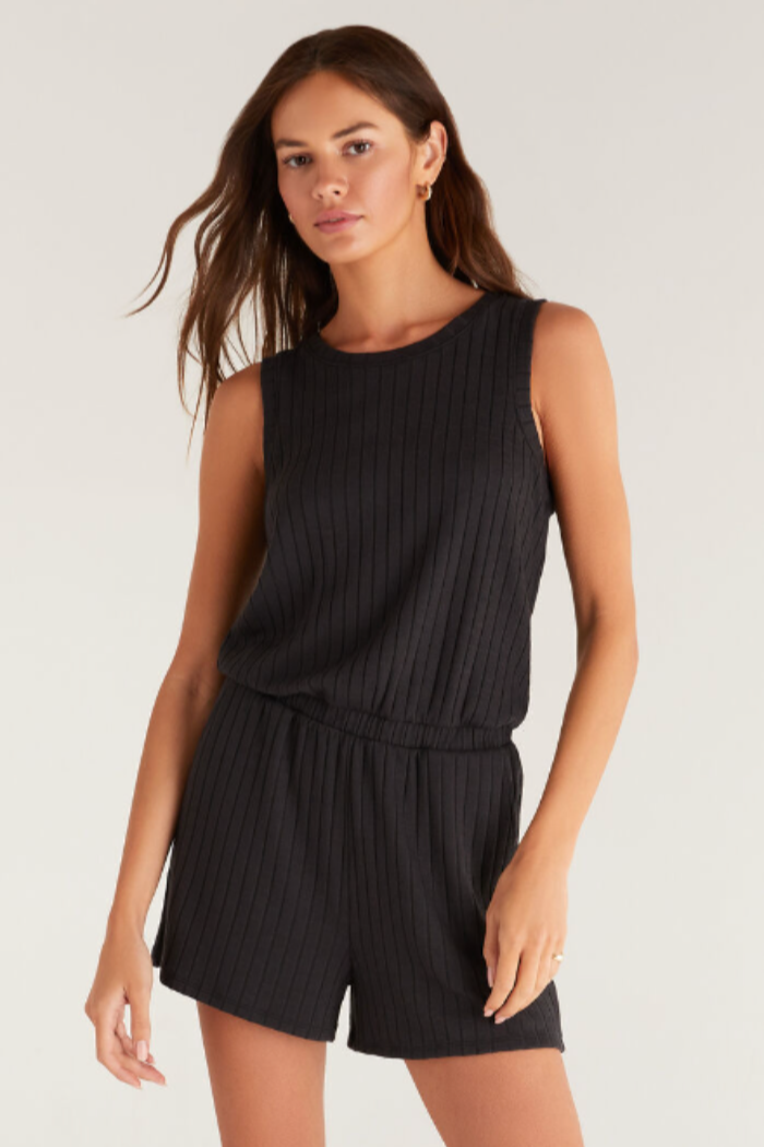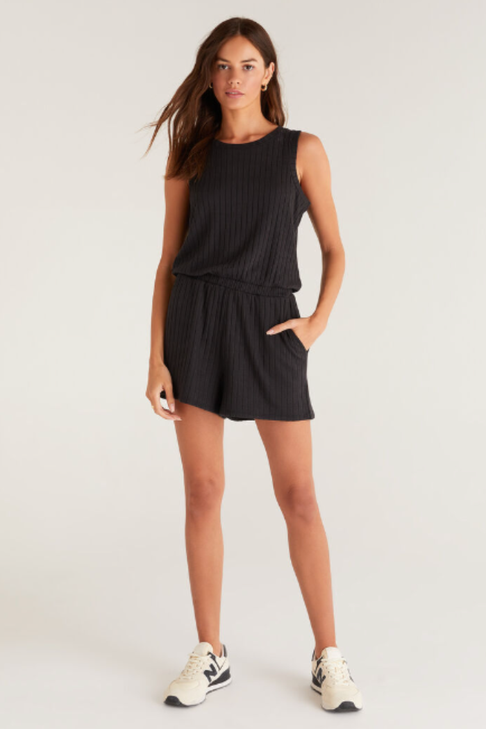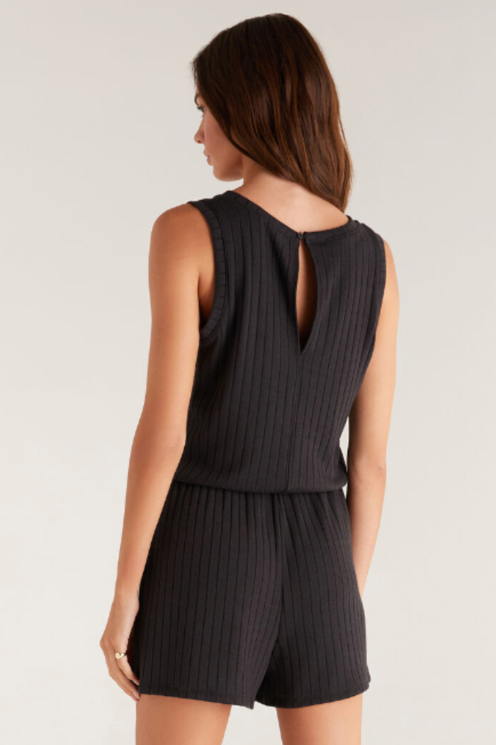 Made of our 10x3 Wide Rib, this relaxed one-piece features a cinched, elastic waistband that gives a flattering bloussant effect and a keyhole detail in the back to make it extra special.