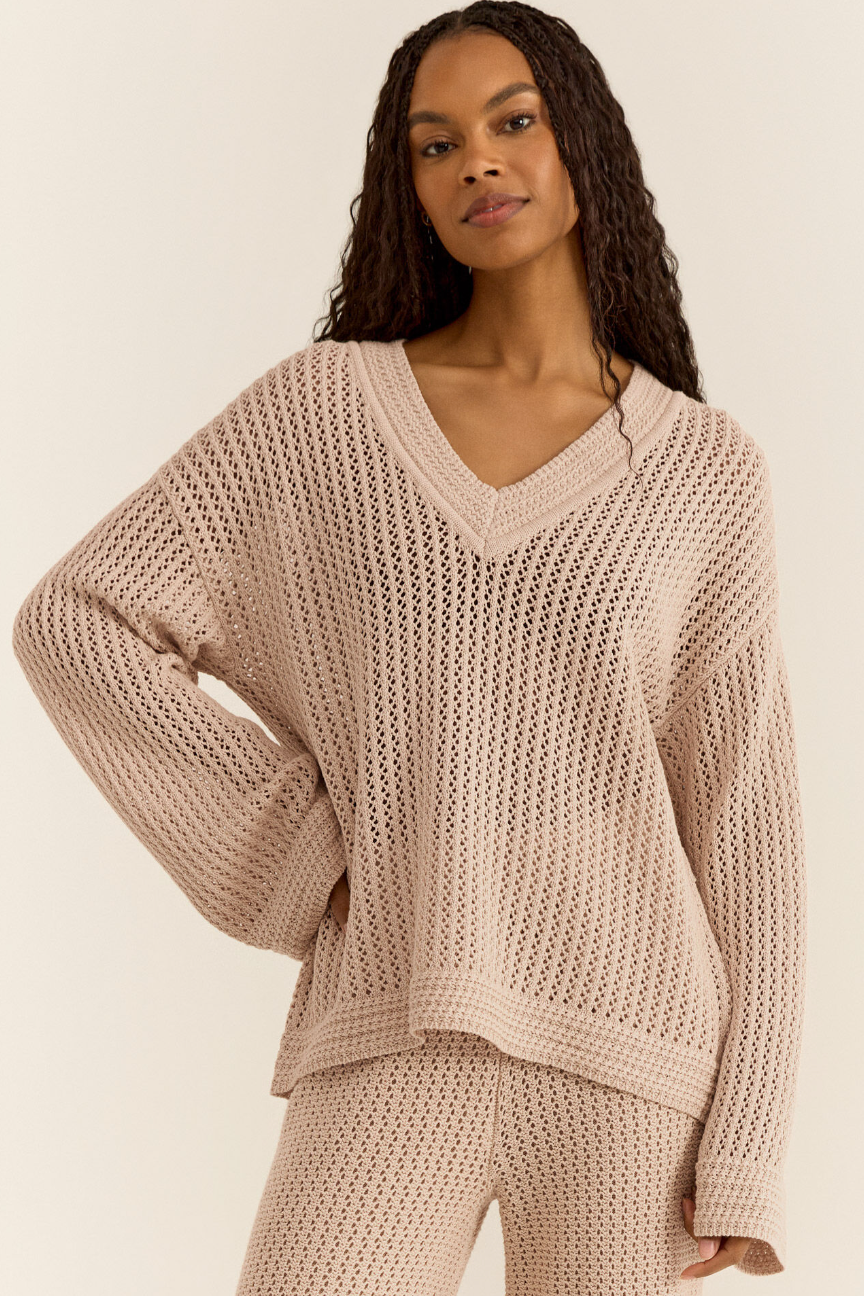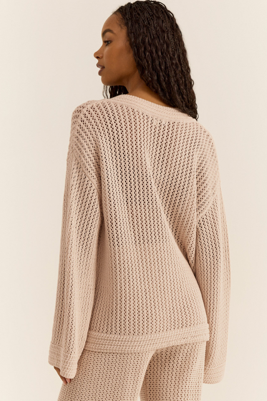 Stay comfortable in the Kiami Crochet Sweater. With a V-Neckline with contrast rib stitching this sweater has a relaxed fit that is easy to throw on. Pair with the Costa Crochet Pant.
