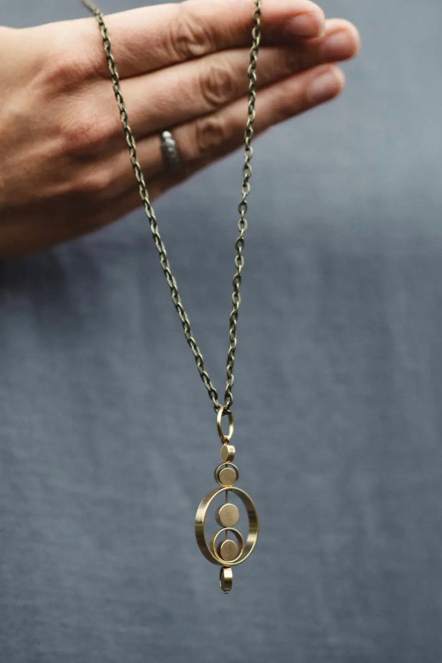 Our Kinetic Brass Circle Fidget Necklace is a seamless blend of style and functionality. This spinner necklace, crafted from high-quality brass, provides an element of calm while making a fashion statement. It's an embodiment of Modern Madini's commitment to creating wearable art that not only projects boldness and adventure but also sustainable organic aesthetics. This piece is designed to accentuate your individuality, making you stand out just enough while adding to your natural beauty.