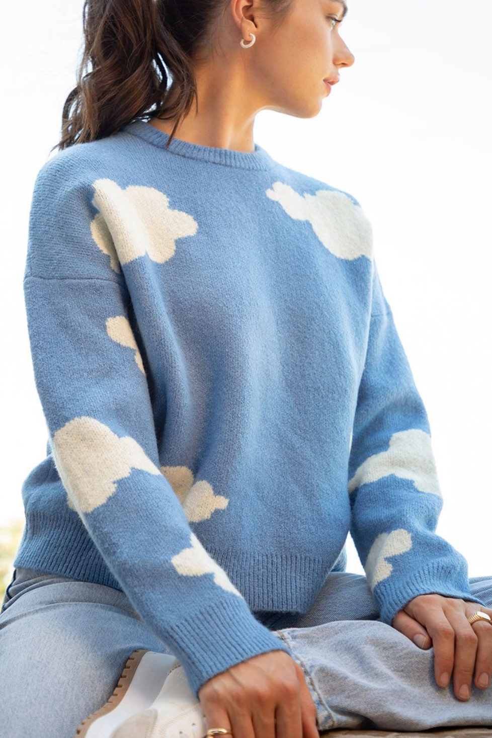 Knit sweater with cloud detail. This sweater is super fun and looks great with denim jeans.