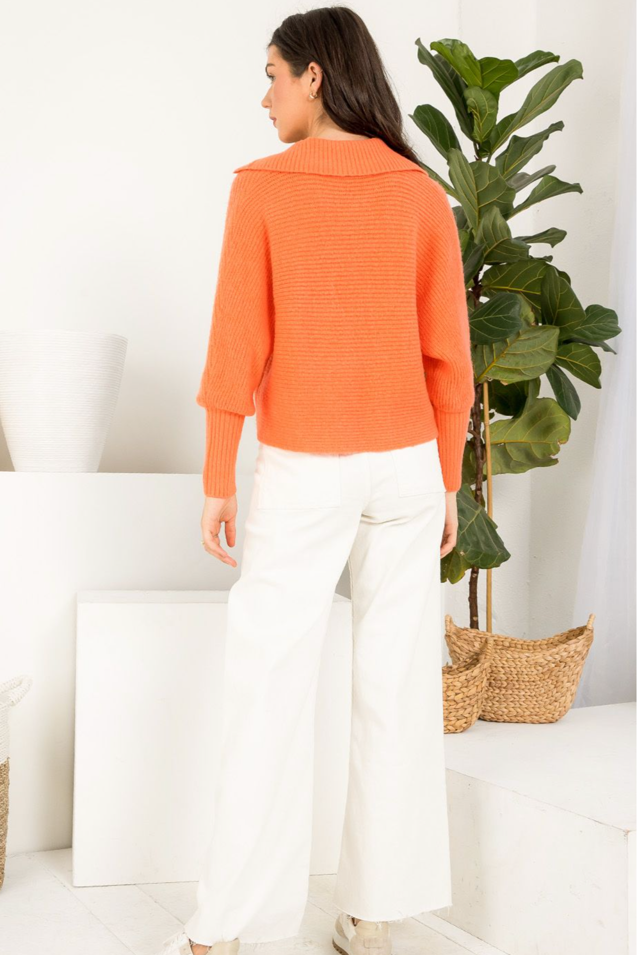 Bright orange collared sweater is a great pop of color for fall/winter. Looks great with fitted bottom like jeans or leggings.