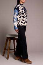 Floral contrasting pattern. This sweater can be paired with everything from dress pants to jeans.