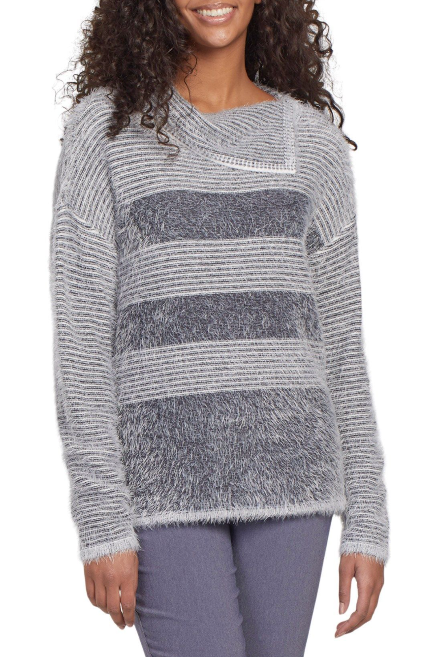 Cowl neck sweater with mixed grey can go with anything. Wear to work with dress pants, wear with jeans, or wear it traveling.