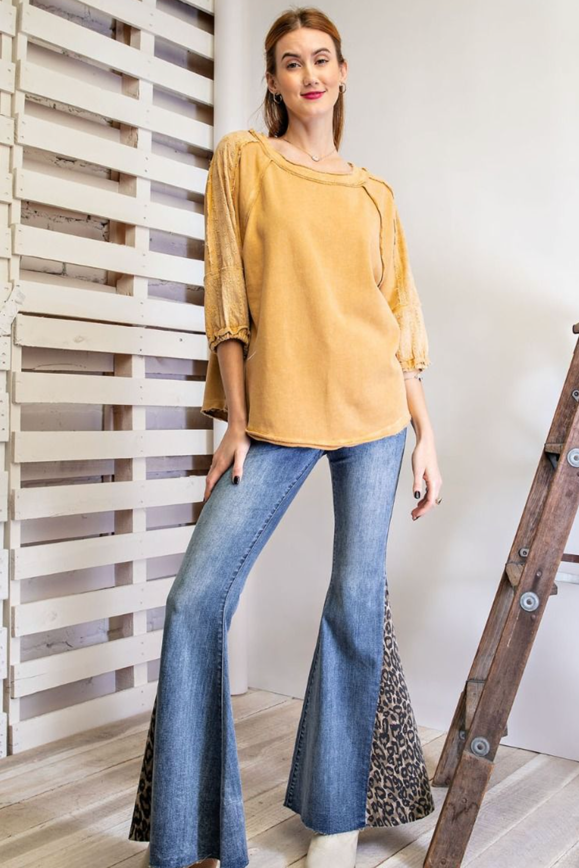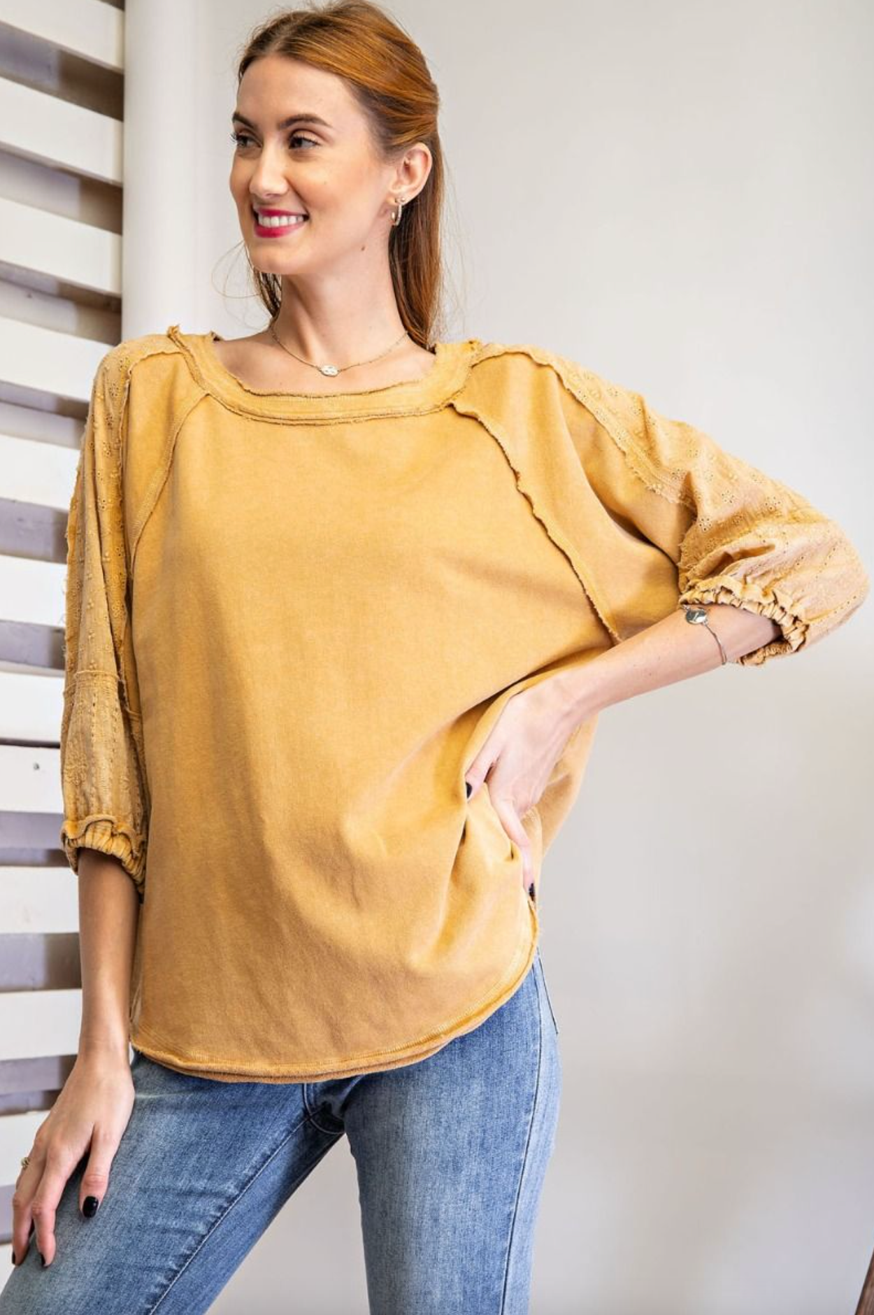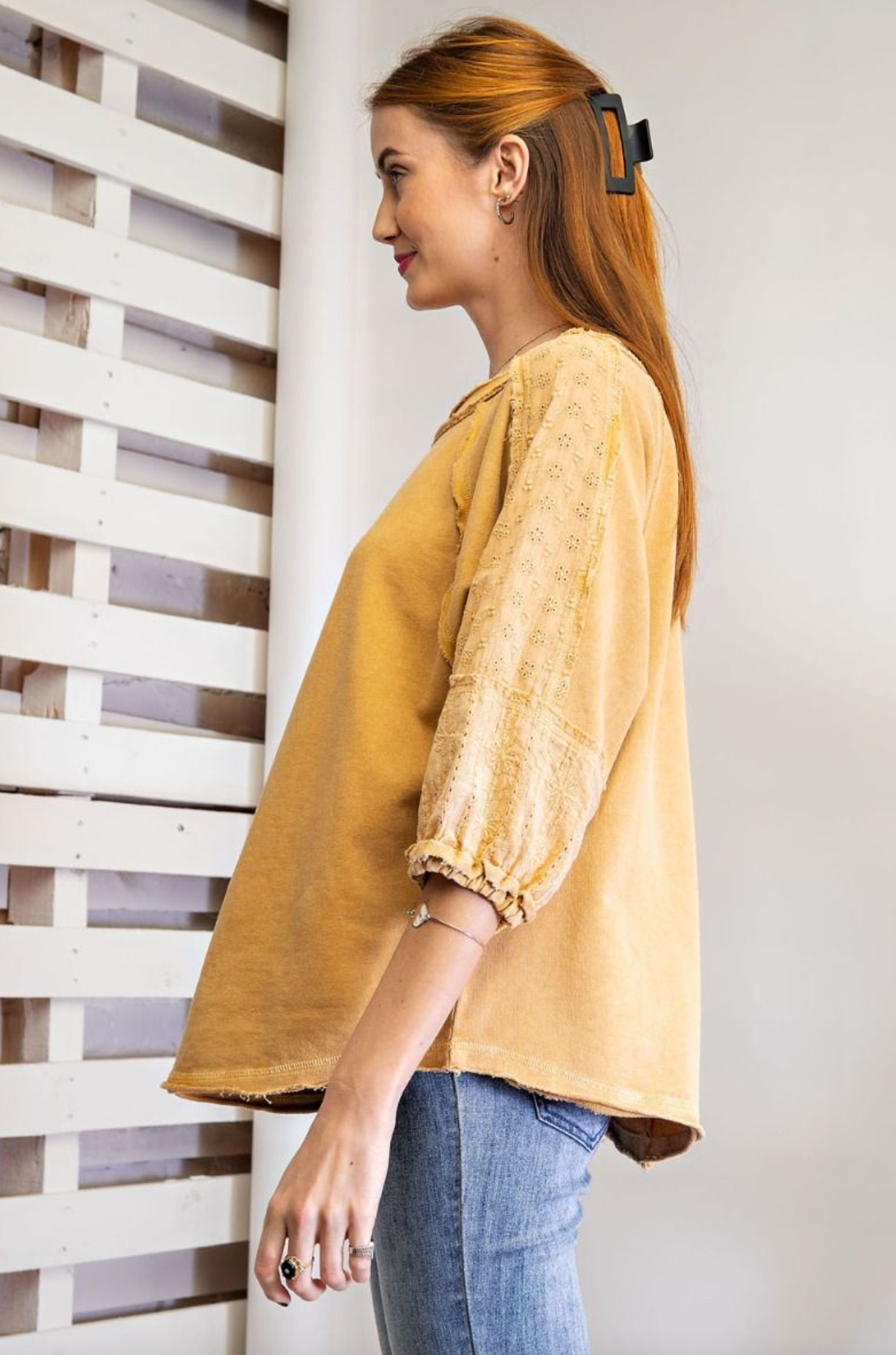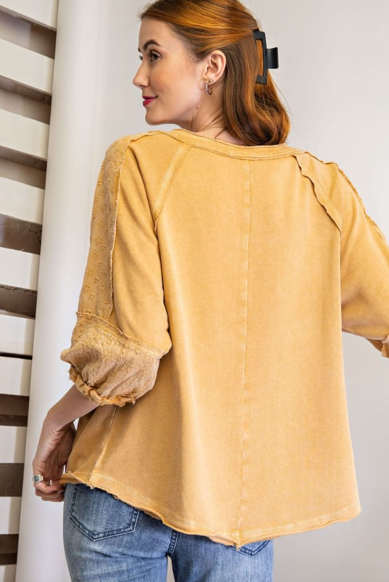 A mixed lace crew neck sweater looks great with denim or white jeans or shorts. Great for Summer and such a pretty color.