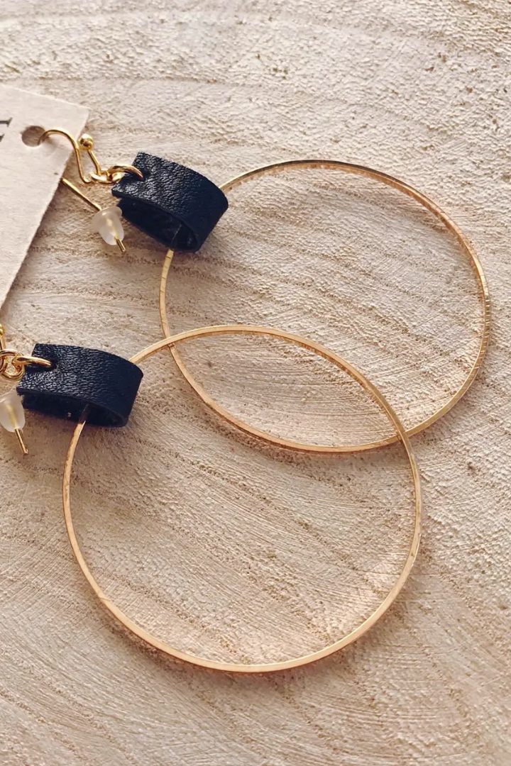 Embrace sustainable fashion with these minimalist leather or cork and gold hoop earrings. Featuring a natural leather/cork accent and delicate gold hoops, these lightweight earrings offer a modern, eco-friendly style perfect for everyday wear or boho-chic outfits.