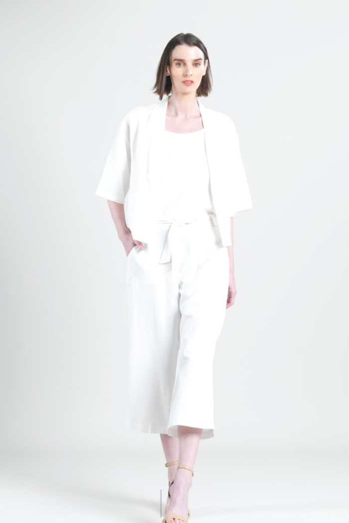 This linen cardigan jacket has a warm weather flare and can be worn with matching style # PT46LN or with jeans.