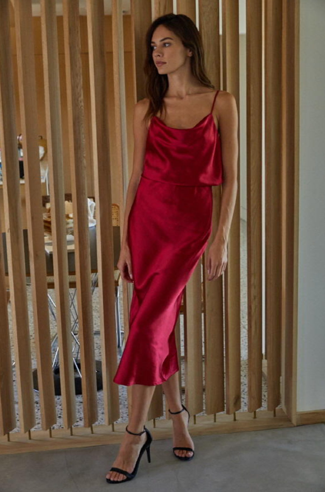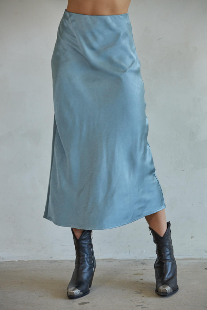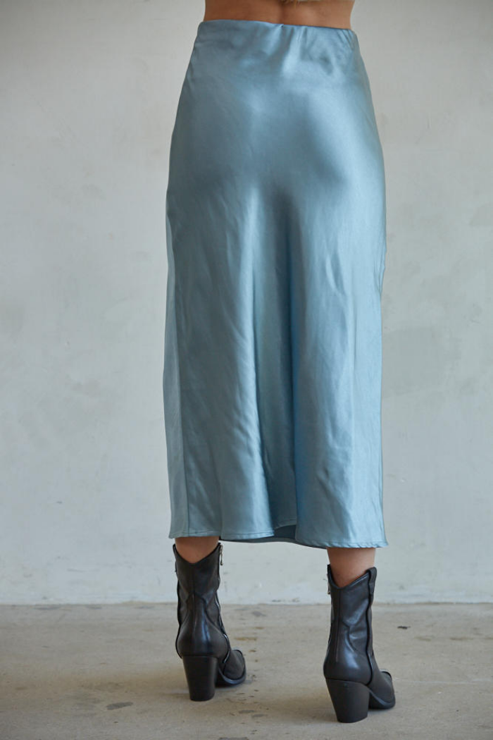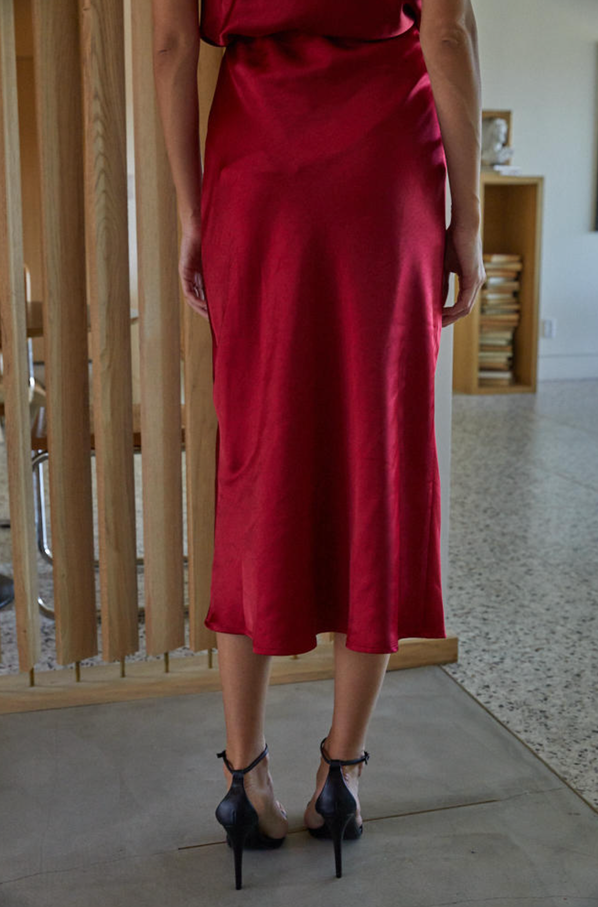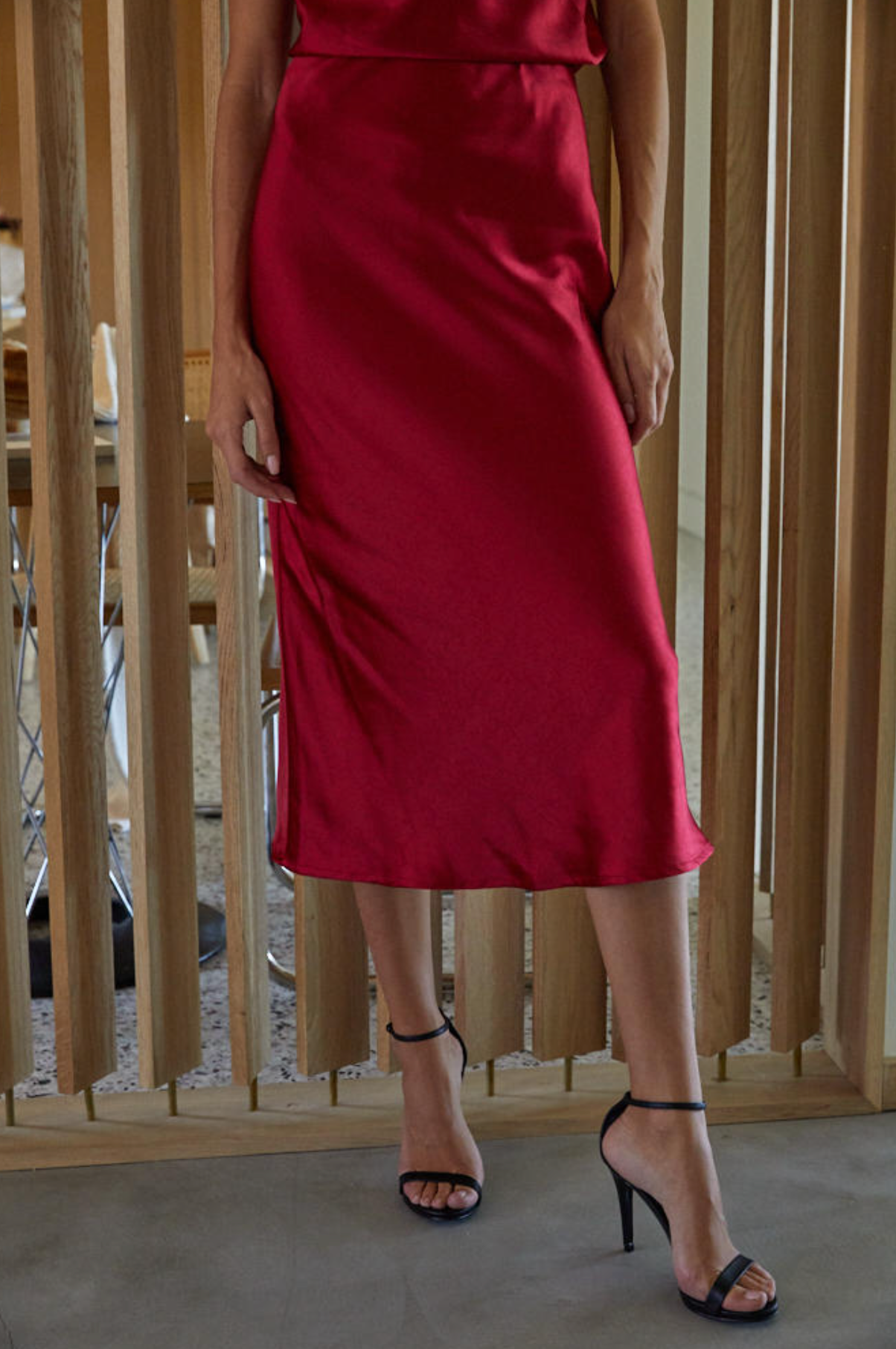 This satin flirt skirt is great for the holidays. Pair with the matching satin top or a cream colored knit sweater.