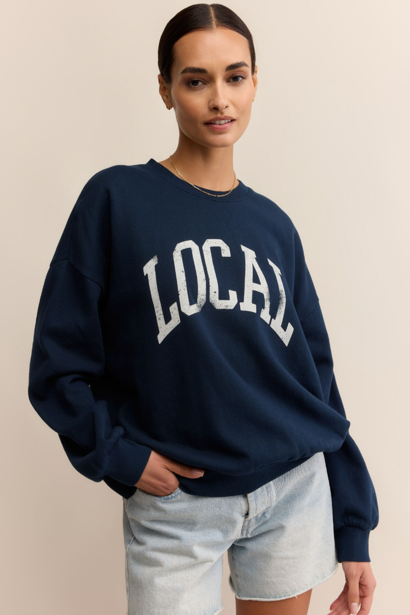 Embrace cozy comfort with a cool, lived-in vibe in the Local Sunday Sweater! Featuring a vintage wash and bold "LOCAL" lettering across the front, it brings a natural style with a hint of hometown pride. The relaxed fit and soft fleece interior make it perfect for layering on chilly days or lounging in style. Pair it with leggings, denim, or bike shorts for that perfectly undone look.