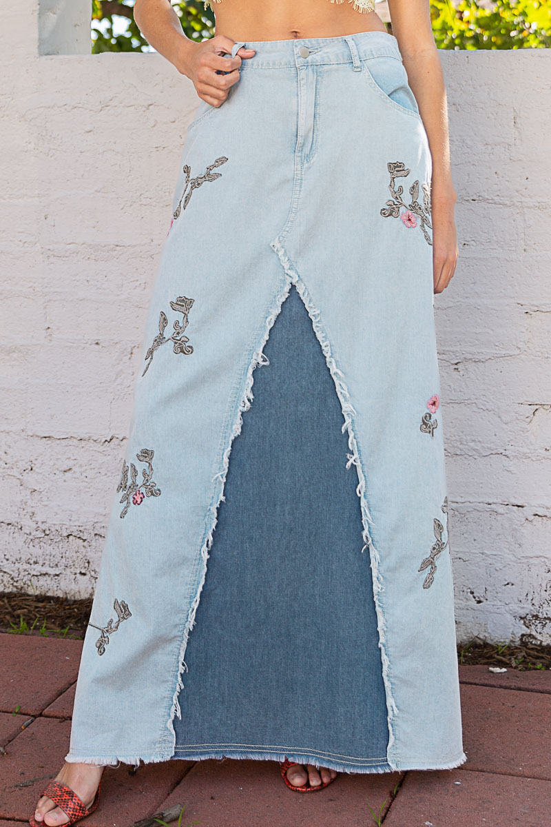 We love this bohemian embroidered skirt. Fun all year long. Pair with wedge sandals or sneakers.