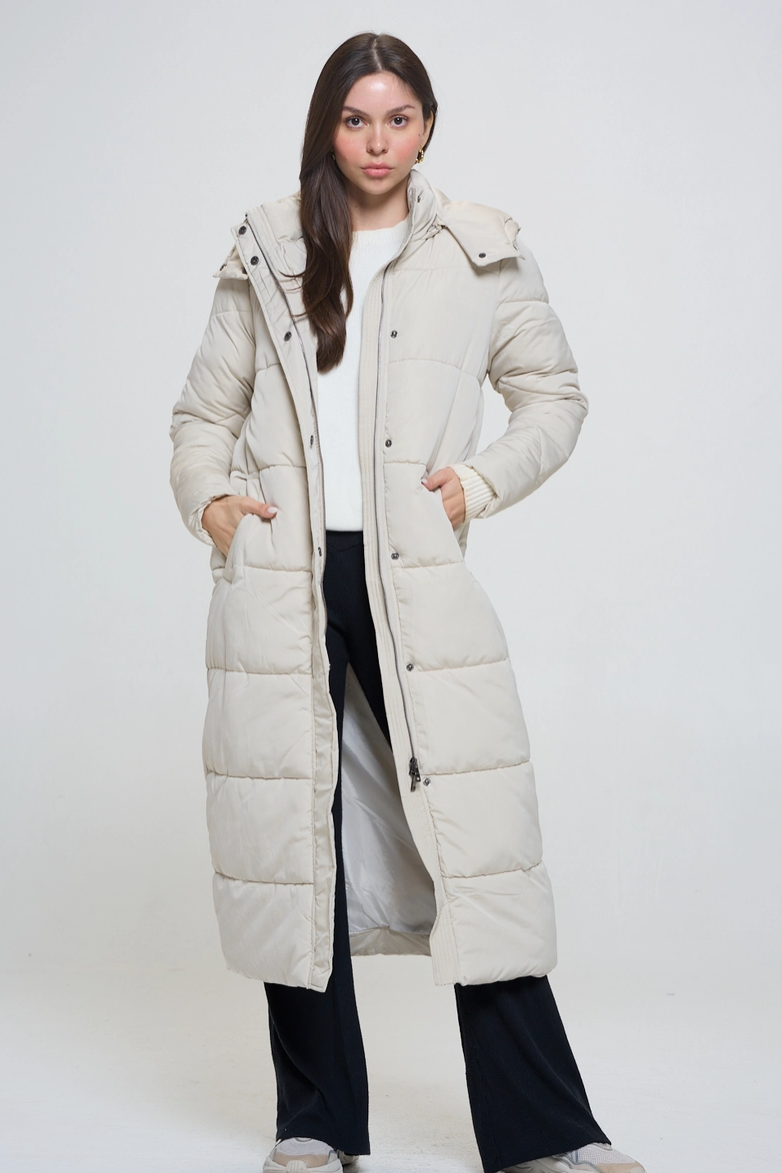 Enjoy an outdoor occasion bundled up in this puffer coat! The long length of this coat will keep you warm from the cold weather, and has a zipper front closure.