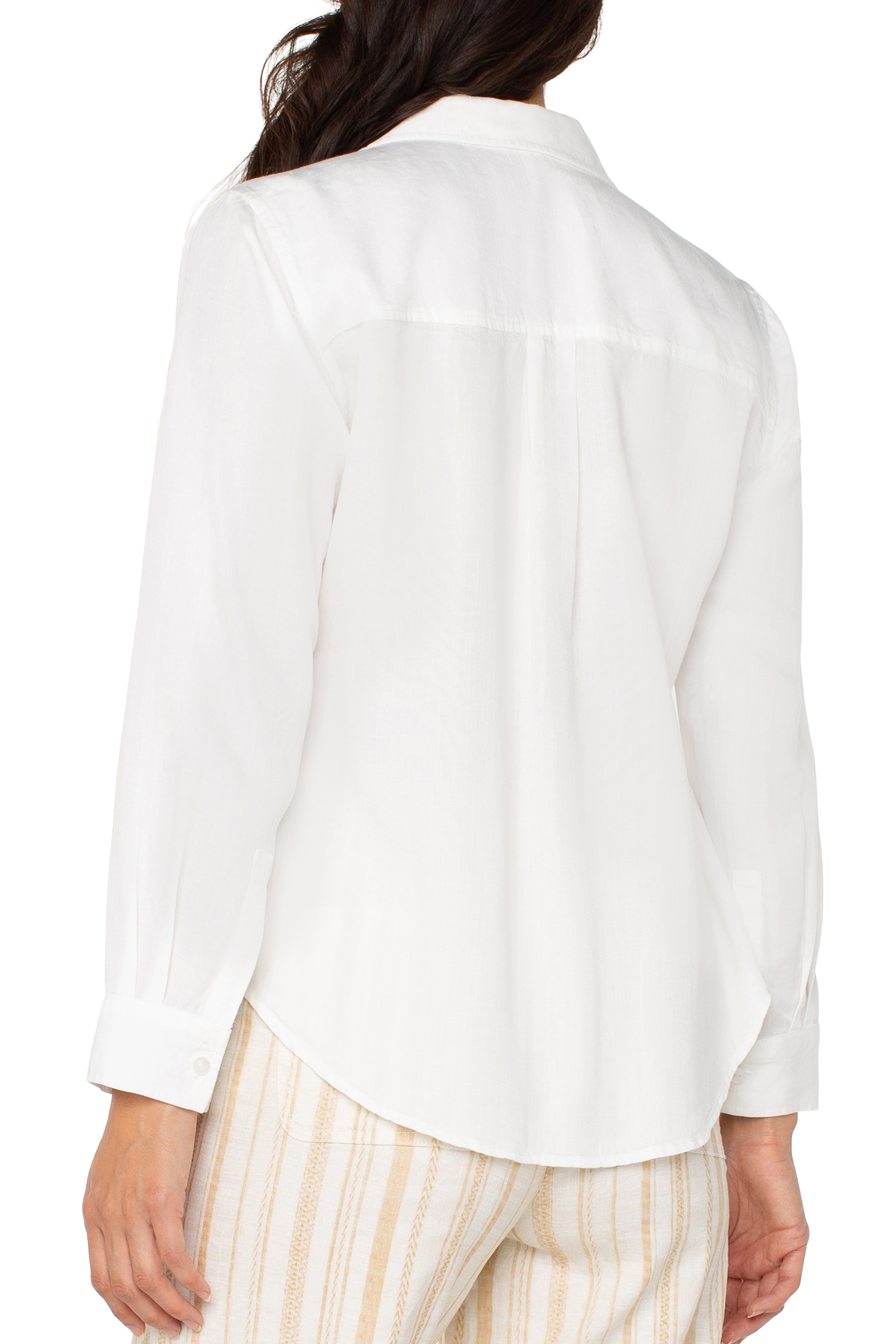 Crisp and classic, this woven shirt features long sleeves with roll-tab cuffs for versatile styling. The lightweight fabric offers breathable comfort, while the fit and timeless silhouette make it a wardrobe staple. Perfect for layering or wearing solo, it transitions effortlessly from casual days to polished looks.