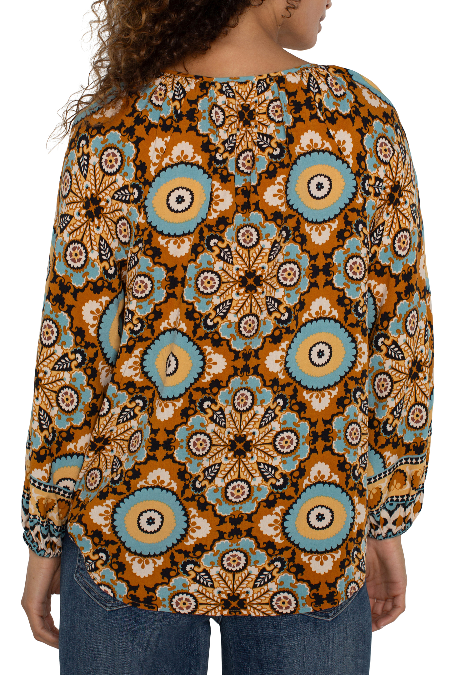 With a fun boho flair, this button front blouse can be paired with jeans or khaki pants. Super fun with a relaxed fit.