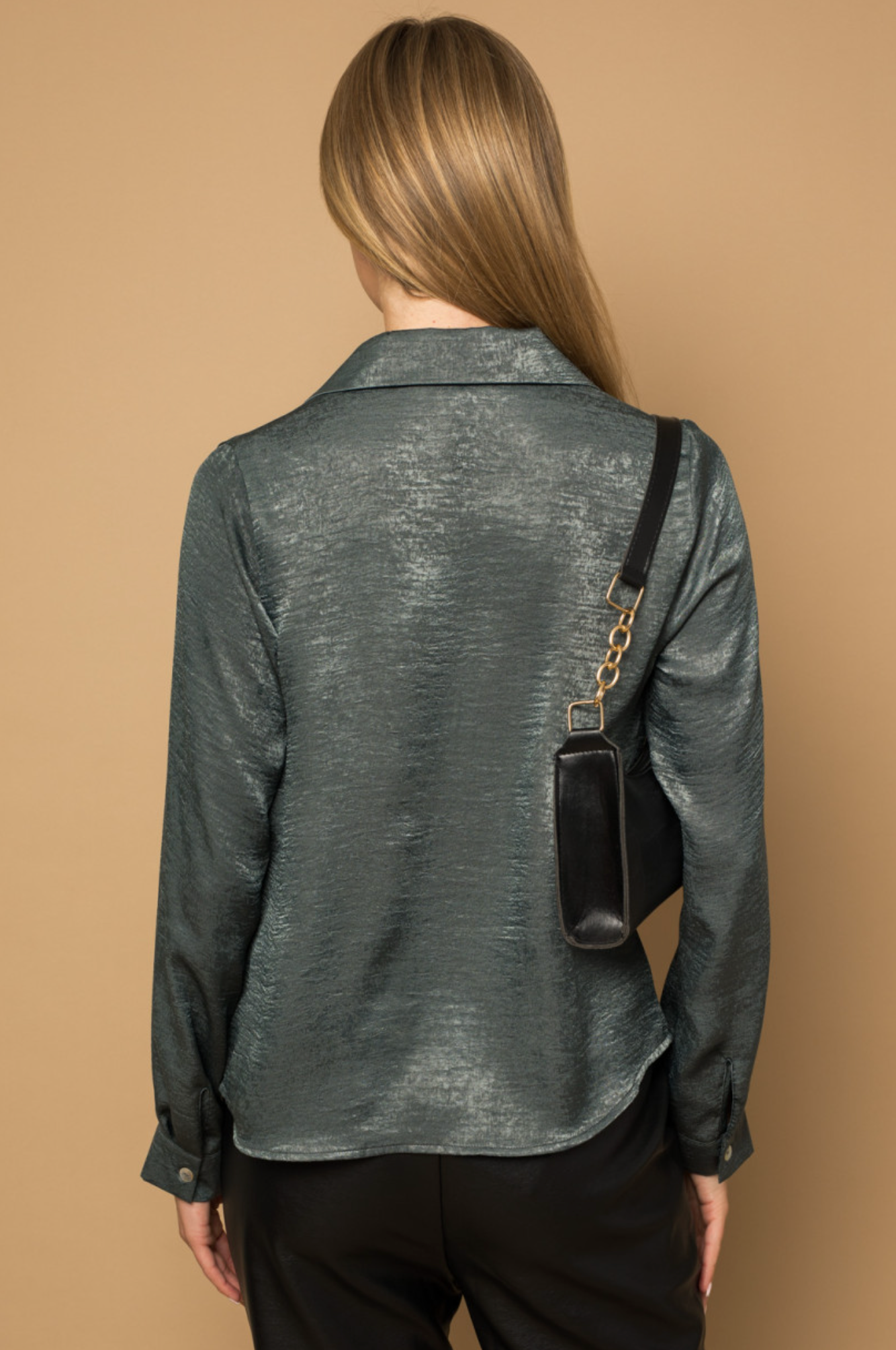 This button down blouse can be worn open or closed, dressed up or dressed down. Pair with trousers for the office or casual with a pair of jeans.