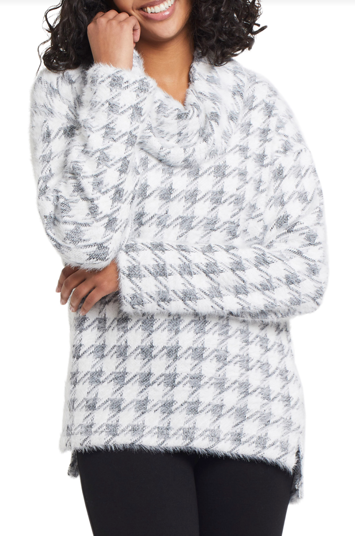 This cowl neck sweater is super cozy and can be worn casual with jeans or to the office with dress pants.