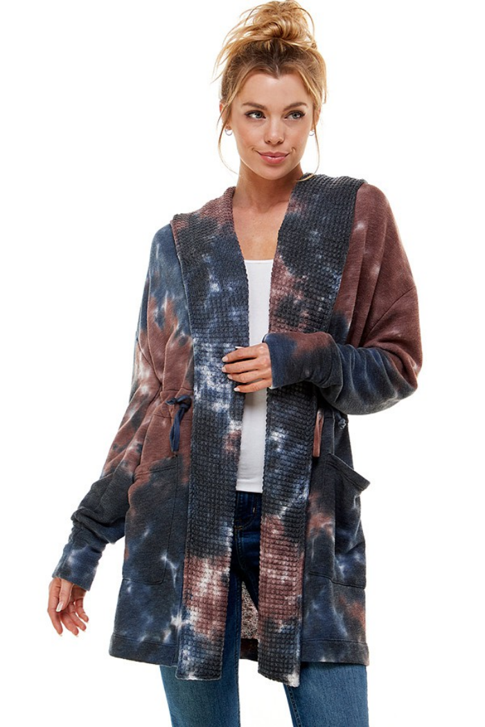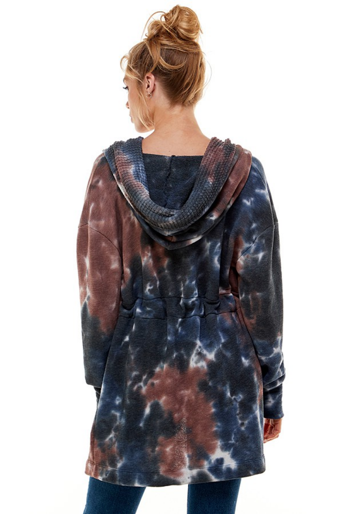 Contrasting sleeve jacket, this can be worn as a sweater, or cover up post swim. Pair with leans or leggings.