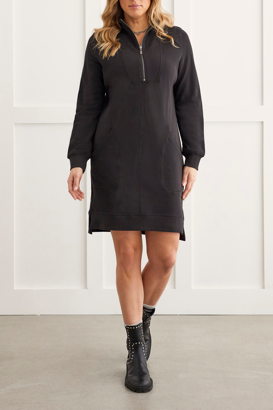 We love this figure flattering dress. Versatile for sneakers to boots. Pair with a vest or over leggings.
