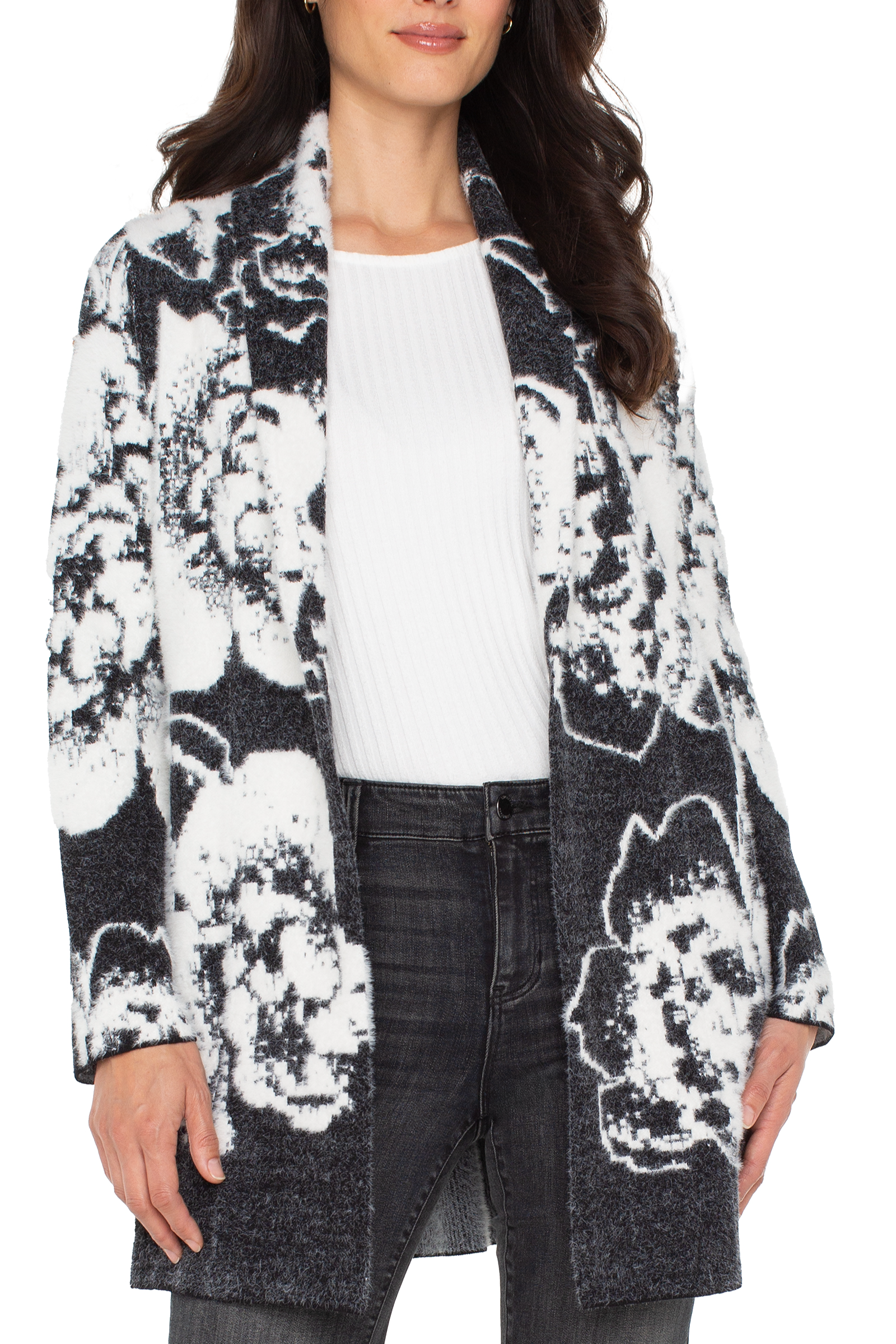 Floral print, open cardigan, so soft. For warmth, style and comfort. This cardigan will carry your through.