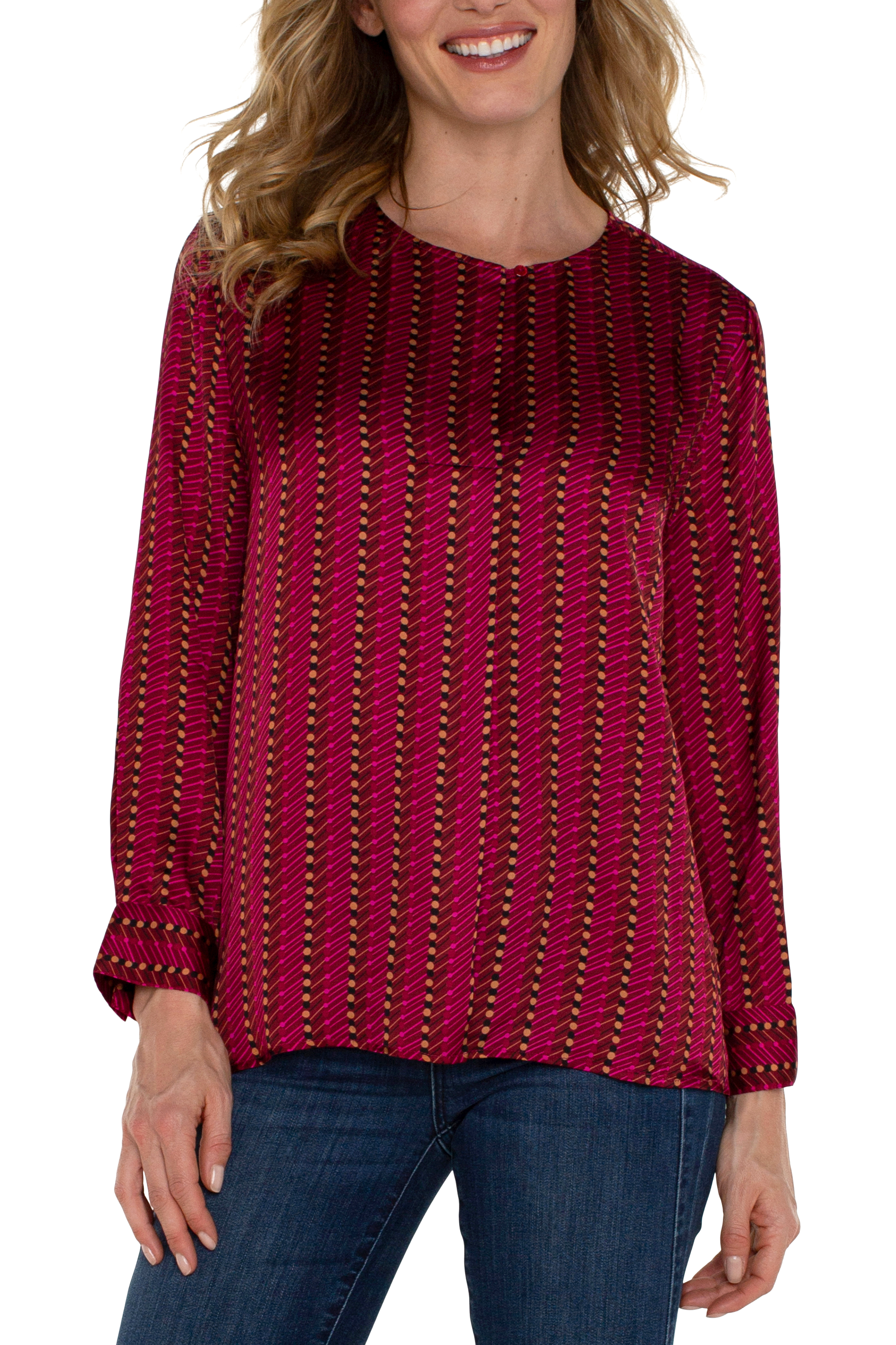 With a sily feeling soft flow, this woven blouse can be worn with everything from your favorite jeans for a upscale casual look to dress pants.