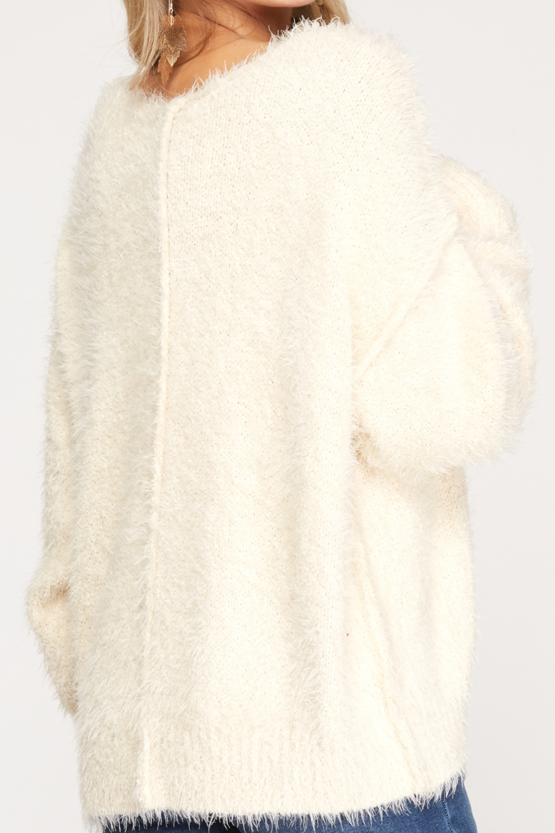 Long Sleeve V-Neck Fuzzy Sweater Top