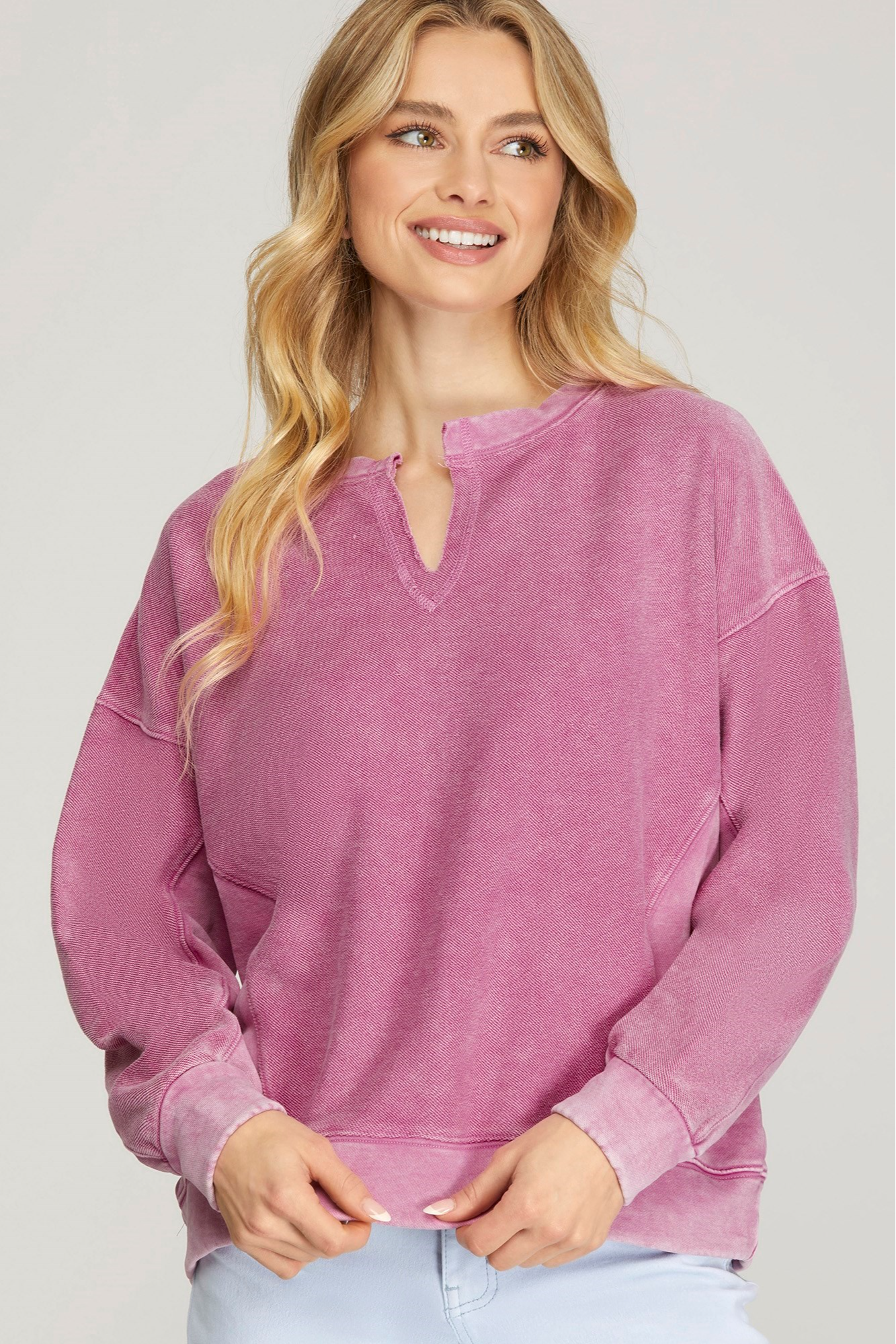 Pair this soft knit long sleeve top with your favorite jeans or post workout wear and errands. Casual and sweet.