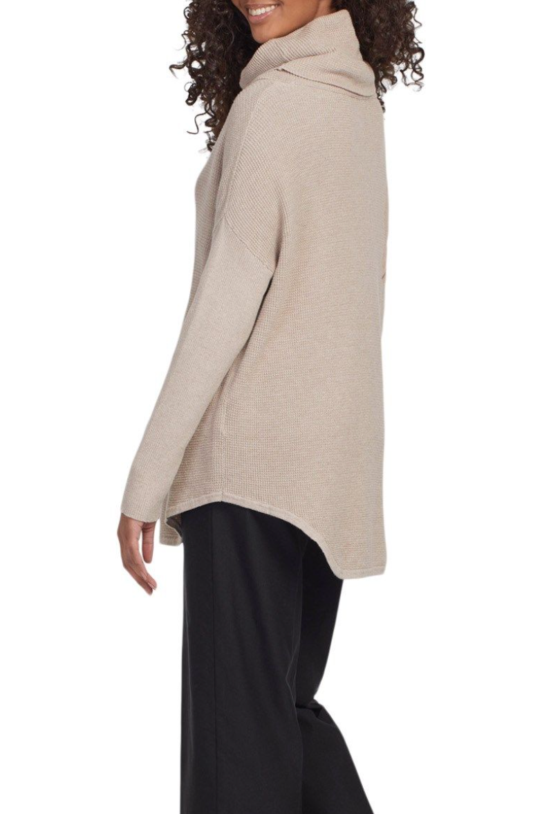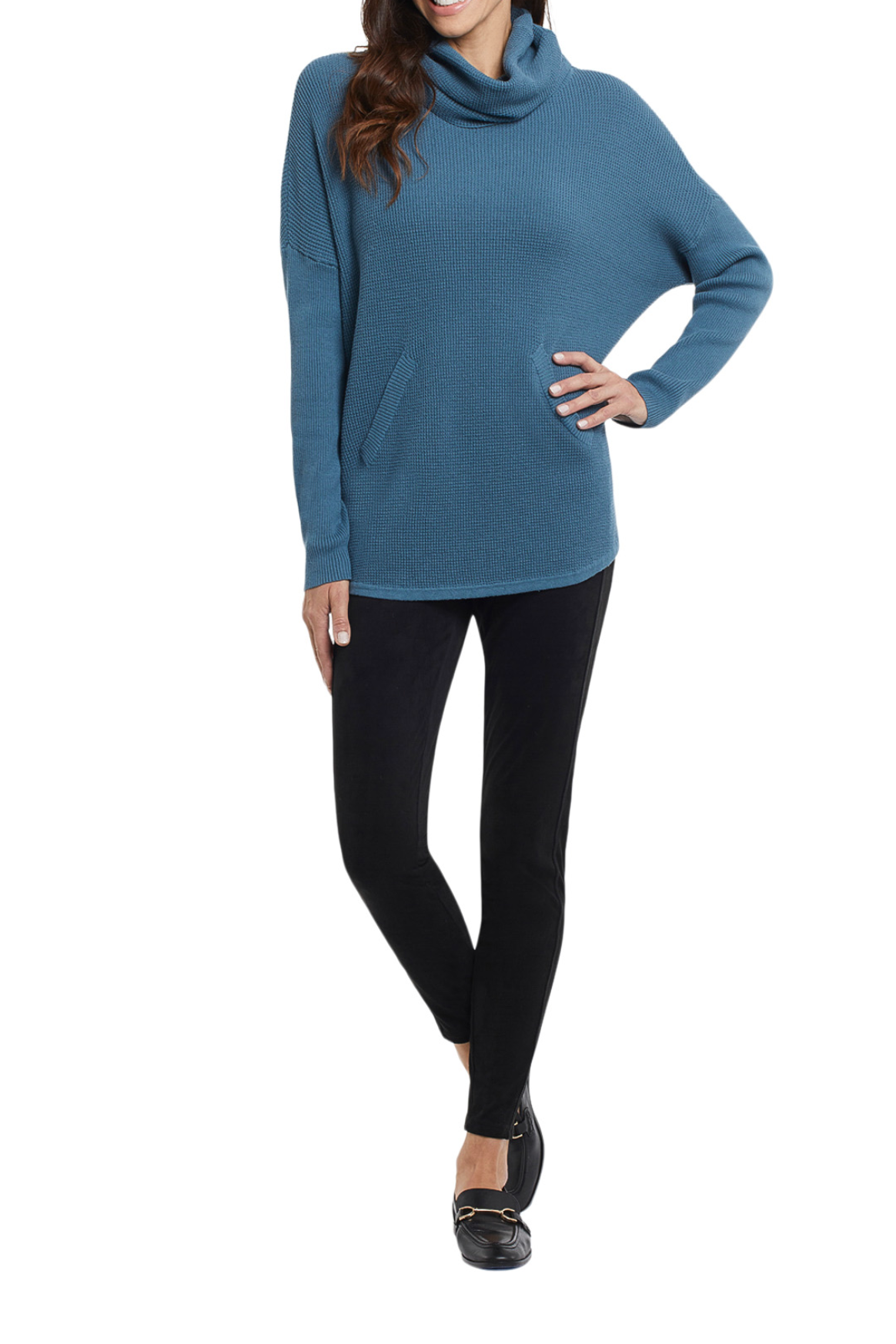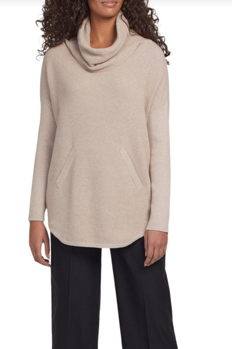 Cowl neck sweater is great for fall. The length of the sweater is a big longer so it provides extra coverage if you wear with leggings.