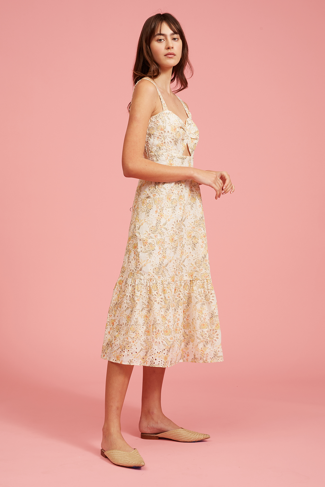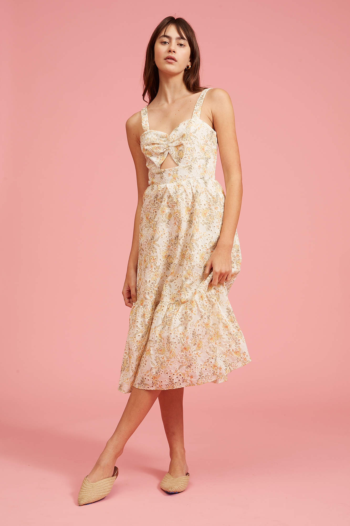This floral dress is feminine and romantic for summer. The floral print and sweetheart neck make it great for a summer wedding, cocktail party, or date night.