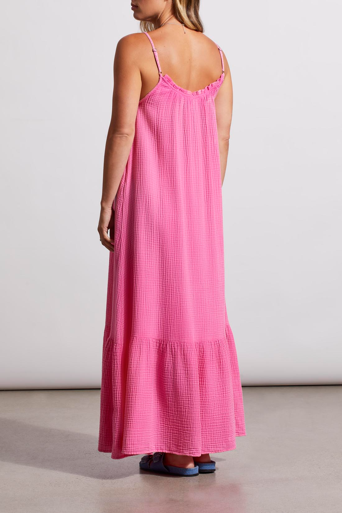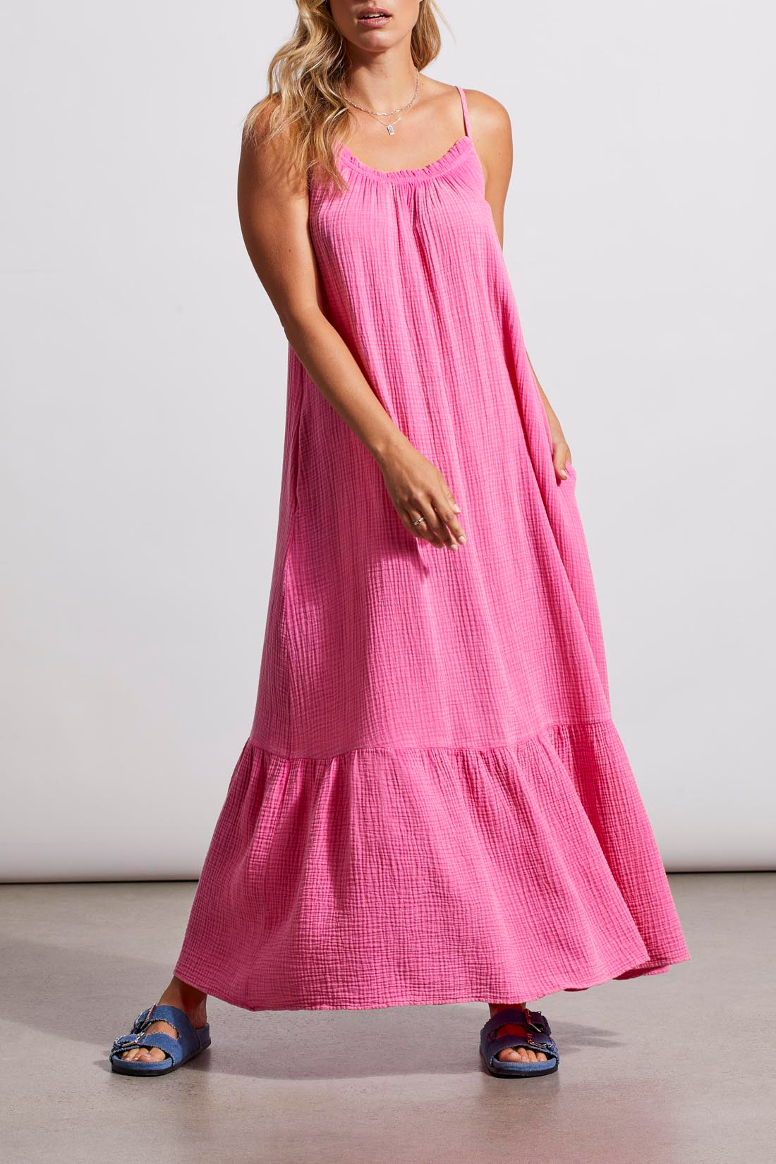 Wear this maxi dress in on your next vacation. This dress has a loose and flowy fit complete with pockets.
