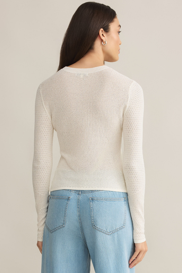 The Melrose Top is different from your basic long sleeve featuring a beautiful intricate floral design. This top also has a crew neckline, a cropped length, a lightweight material, and is fitted.