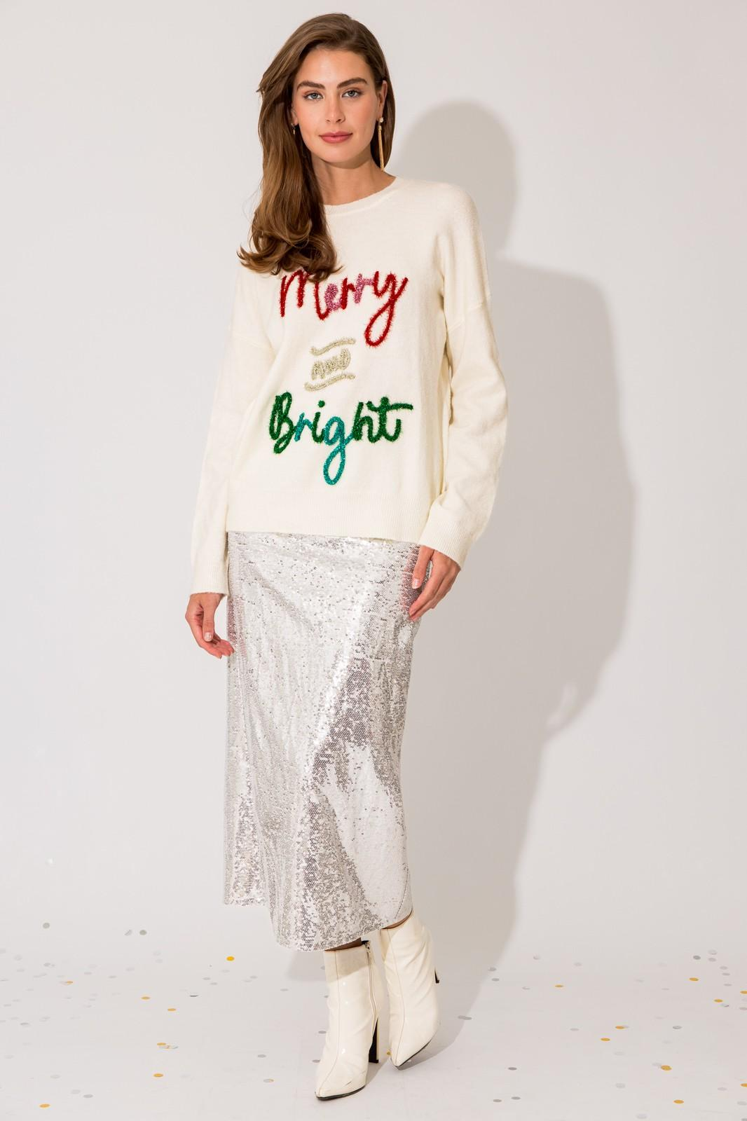 Festive and fun! This holiday sweater can be paired with either a skirt or jeans.