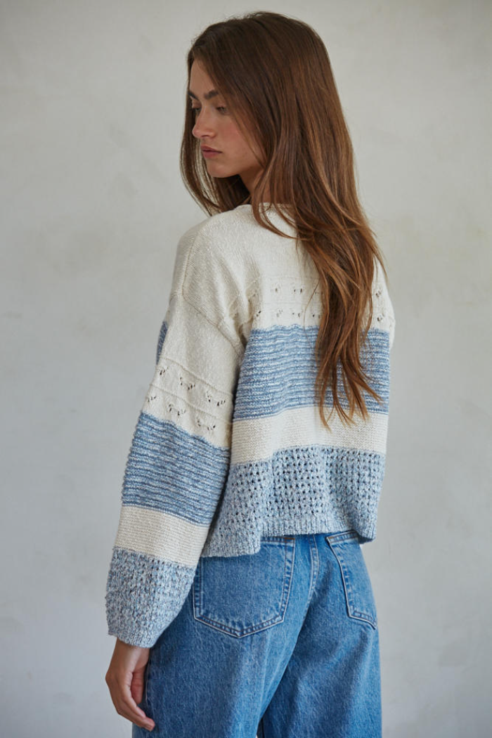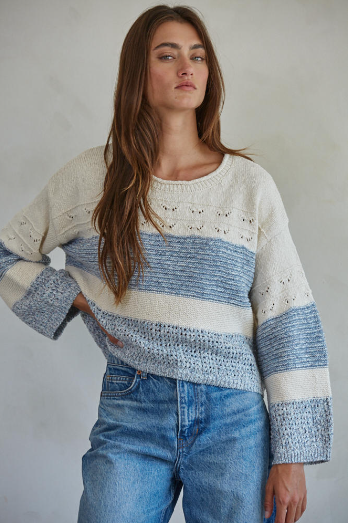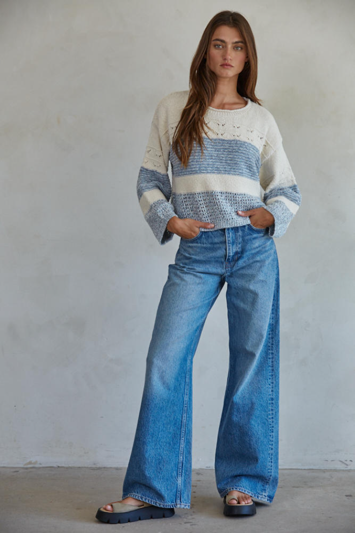 Knit Sweater Cotton Nylon Acrylic Polyester Striped Round Neck Long Sleeve Pullover Top